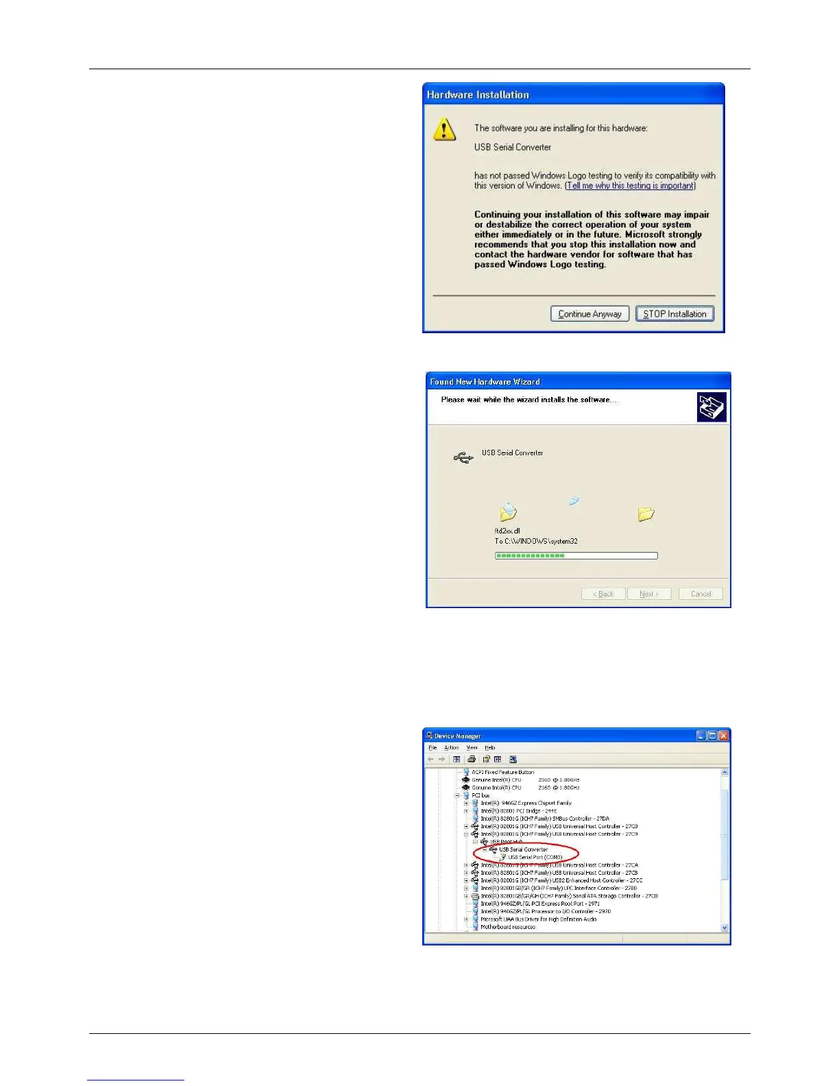 the label "USB Serial Port":