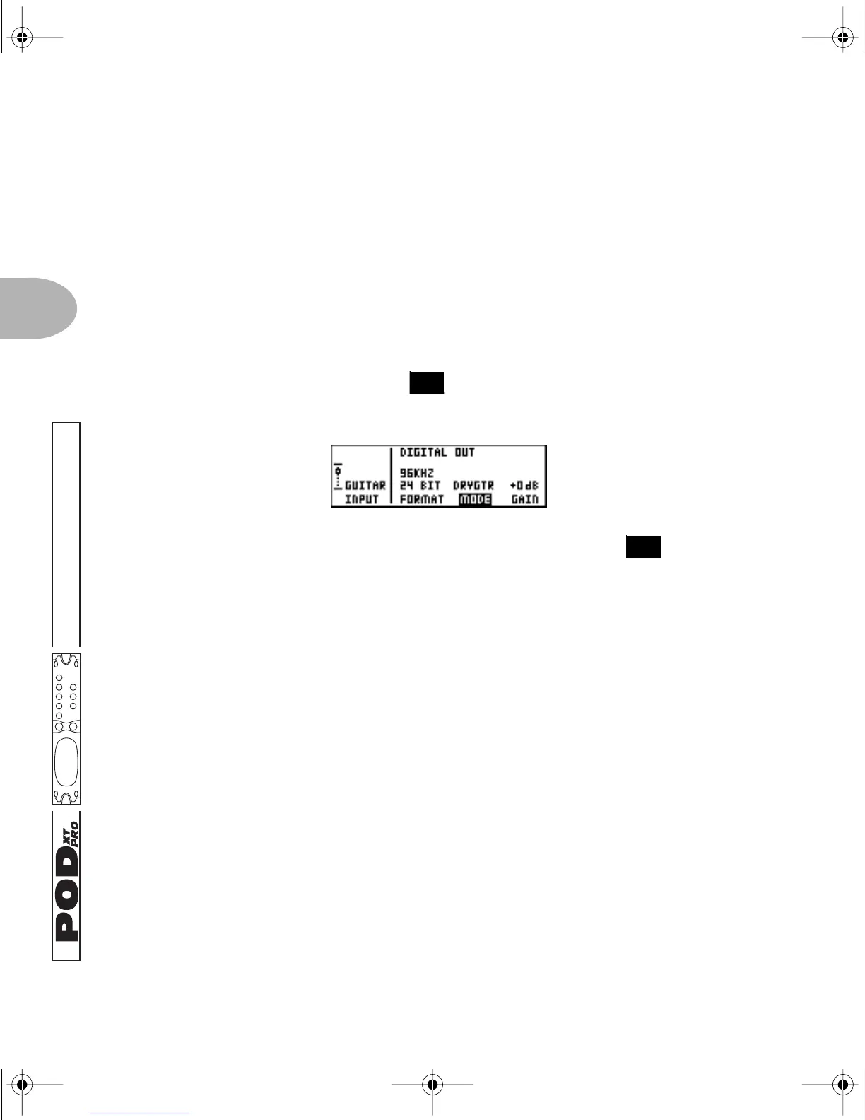 GUITAR IN. Select DRYGTR for the MODE option. Connect PODXT Pro’s AES/EBU or