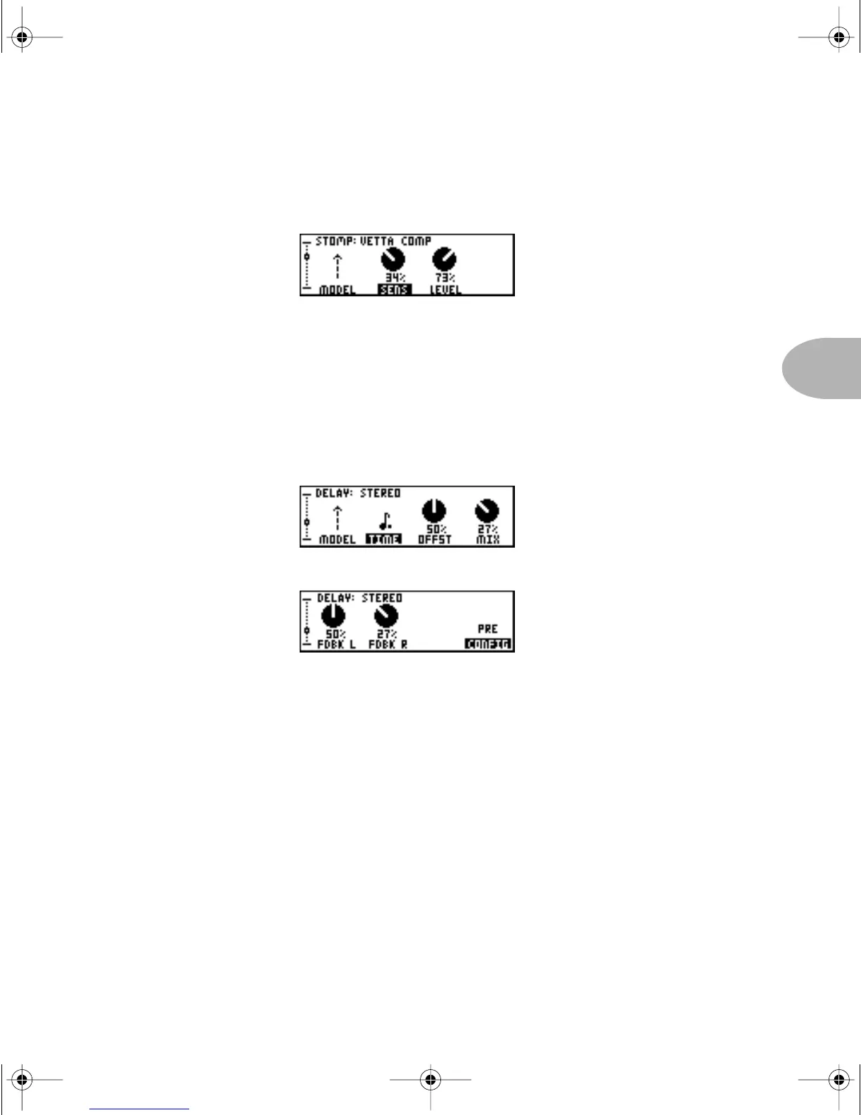 ELAY and MOD, have 2 pages of parameters: