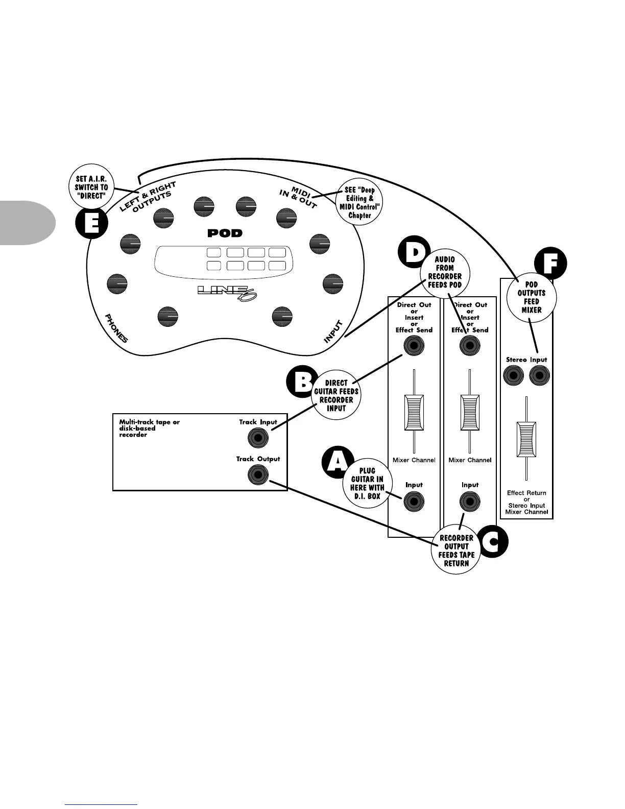 recorder to monitor the input to that track. Connect the recorder’s track output to