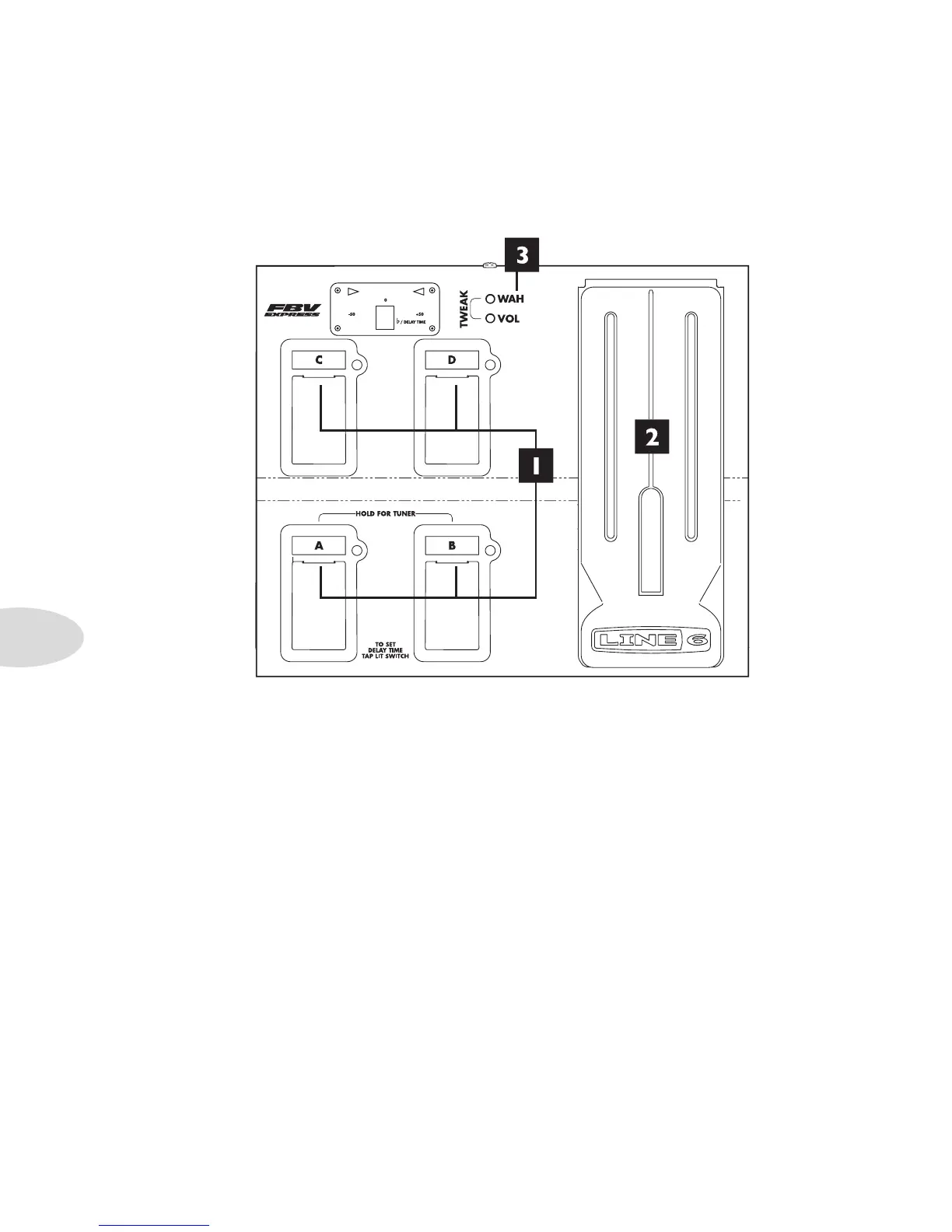 2. FBV Pedal: Press the pedal forward to click the toe-switch, turning the pedal from