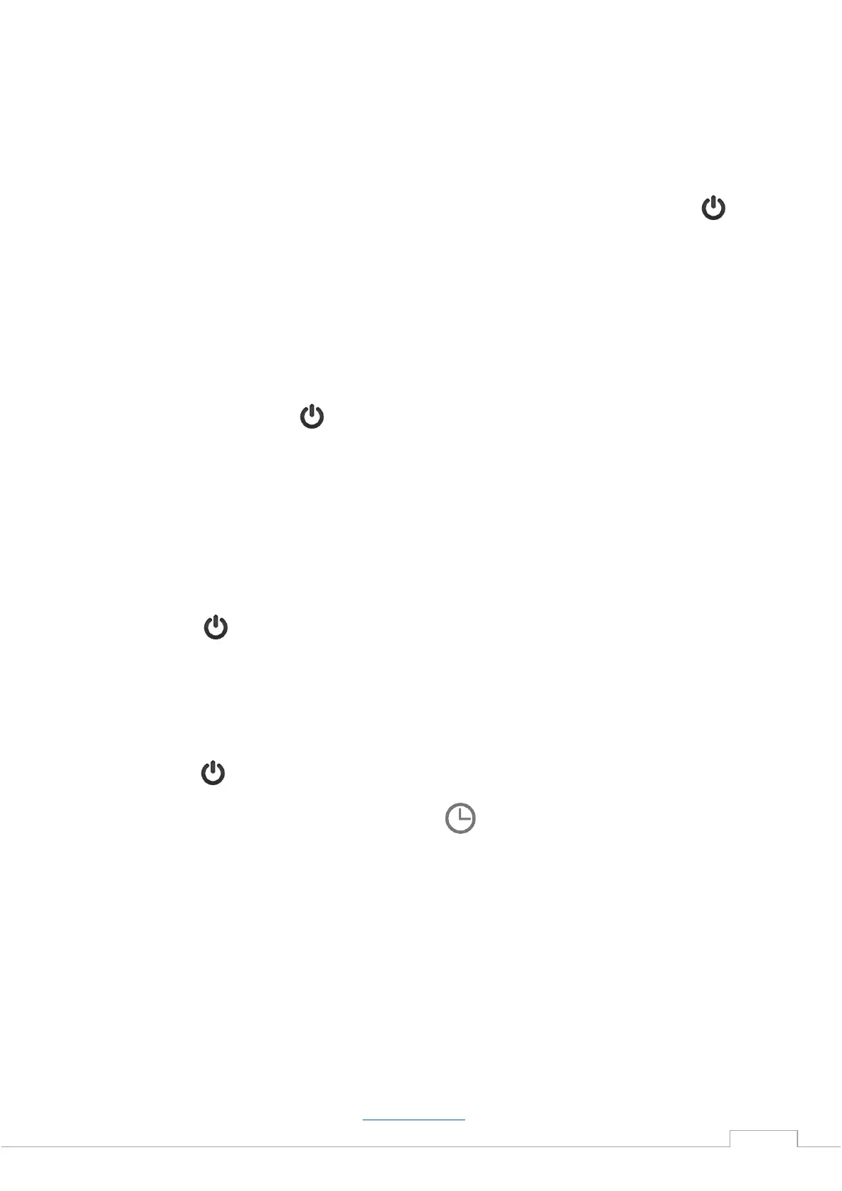 Appuyez sur pour allumer le radiateur. L'écran affiche la température ambiante, l'heure (sans horloge), la