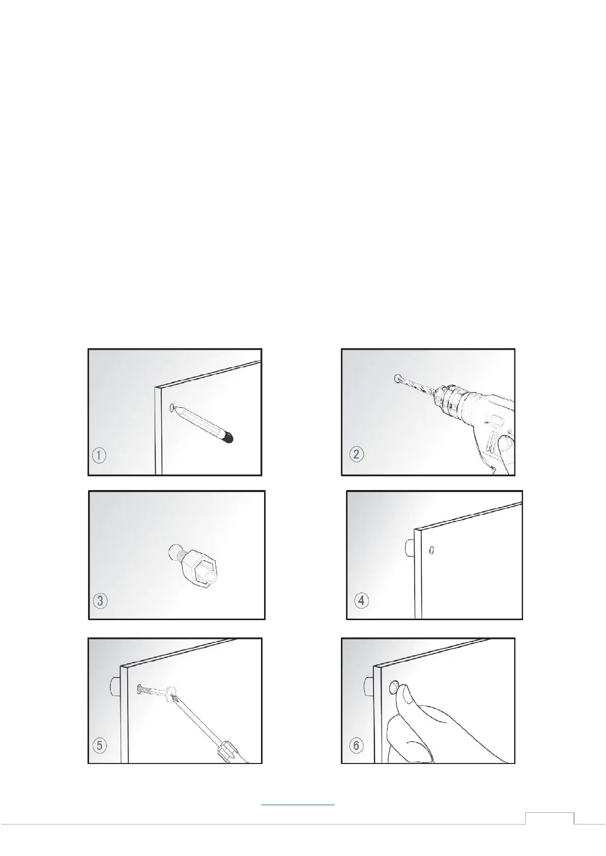 1. Segnare sulla parete i quattro punti di foratura (per ottenere delle migliori prestazioni, si consiglia di