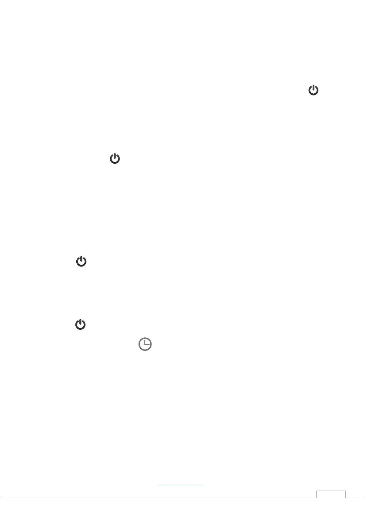 Druk op om de verwarming aan te zetten. Het display toont de kamertemperatuur, de tijd (zonder klok), de