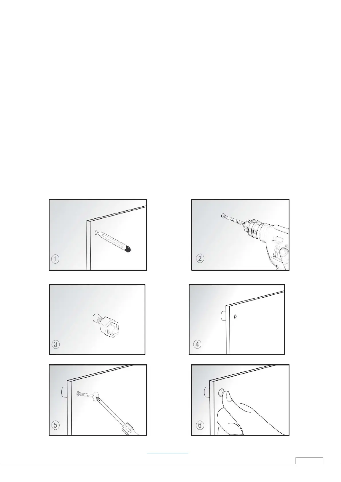 1. Marque en la pared los cuatro orificios a perforar. (Se recomienda instalar el calefactor a una distancia