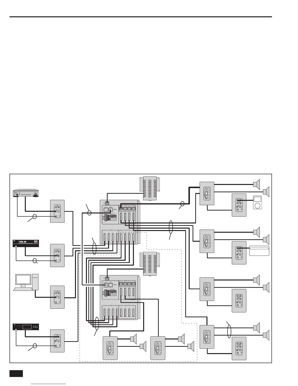 source input at each speaker zone. Local input wall plates connect