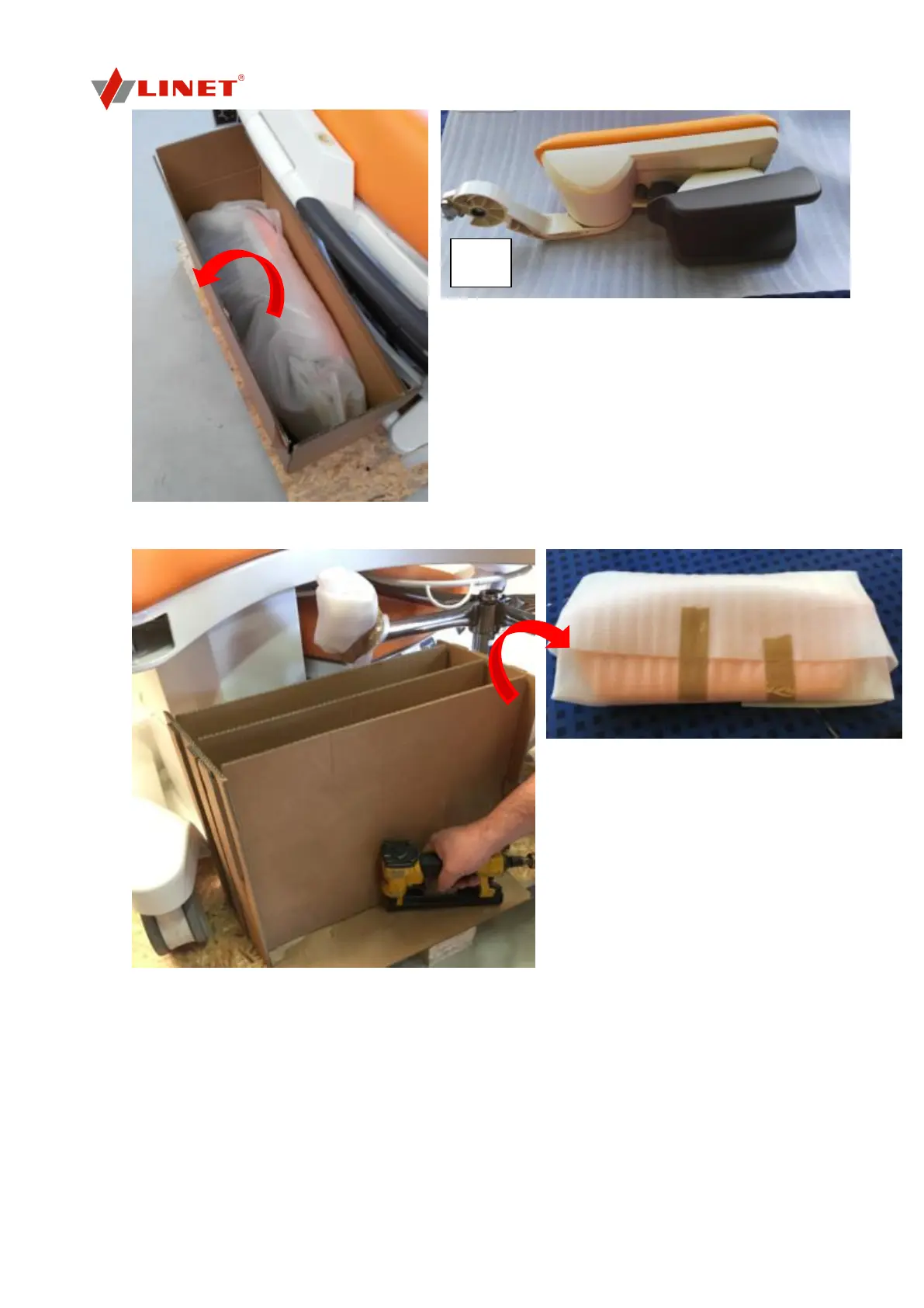 Unscrew the medical chair (if it is included in the package). It is recommended to put the bed to a higher
