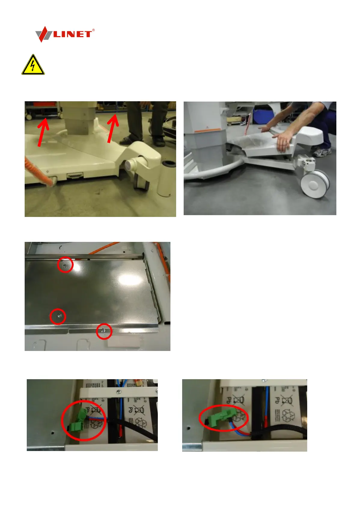 unpacking, the battery is normally disconnected from the equipment. The following pictures show