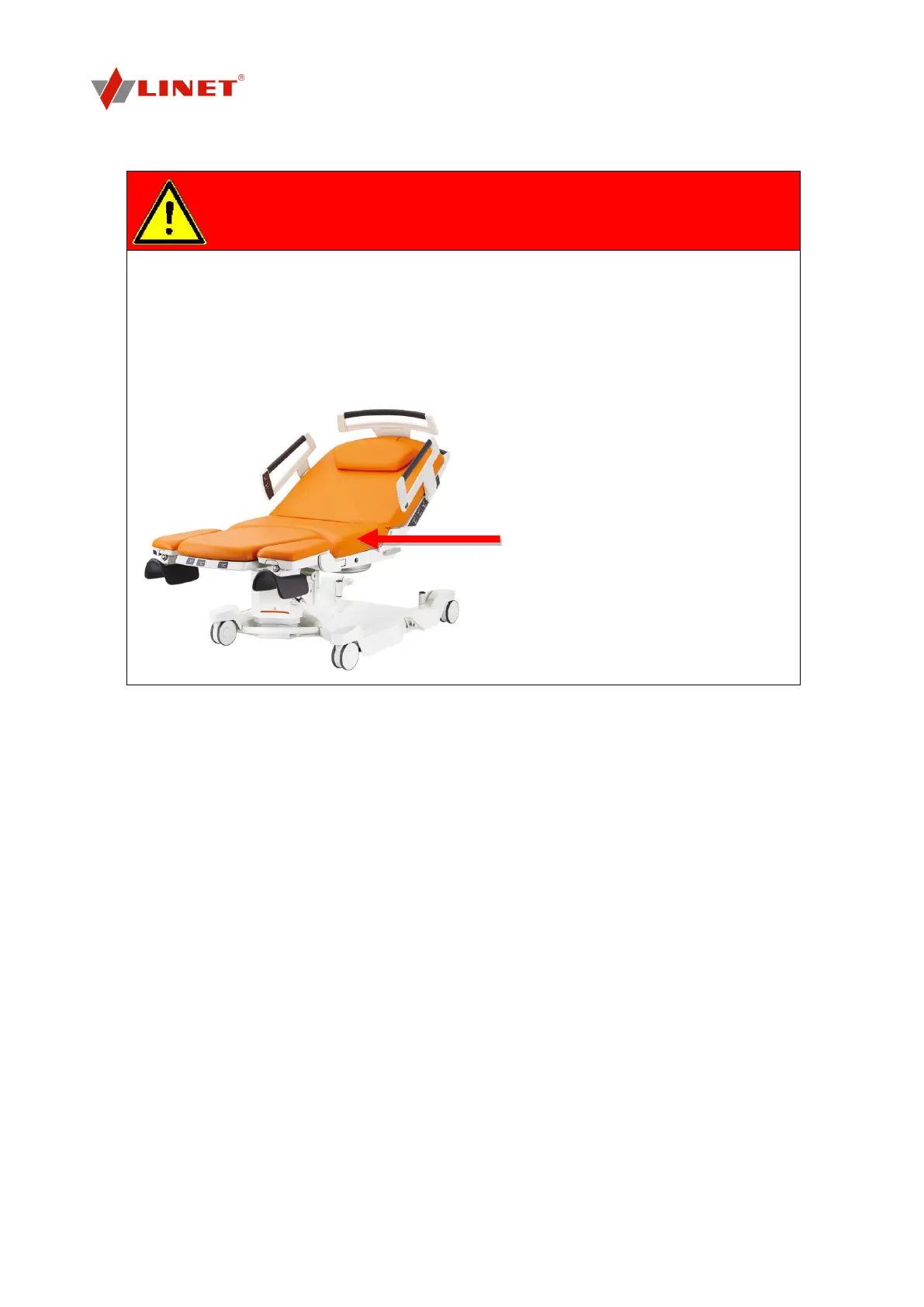 Special caution must be taken when operating moving parts of the bed. Damage of the bed or patient