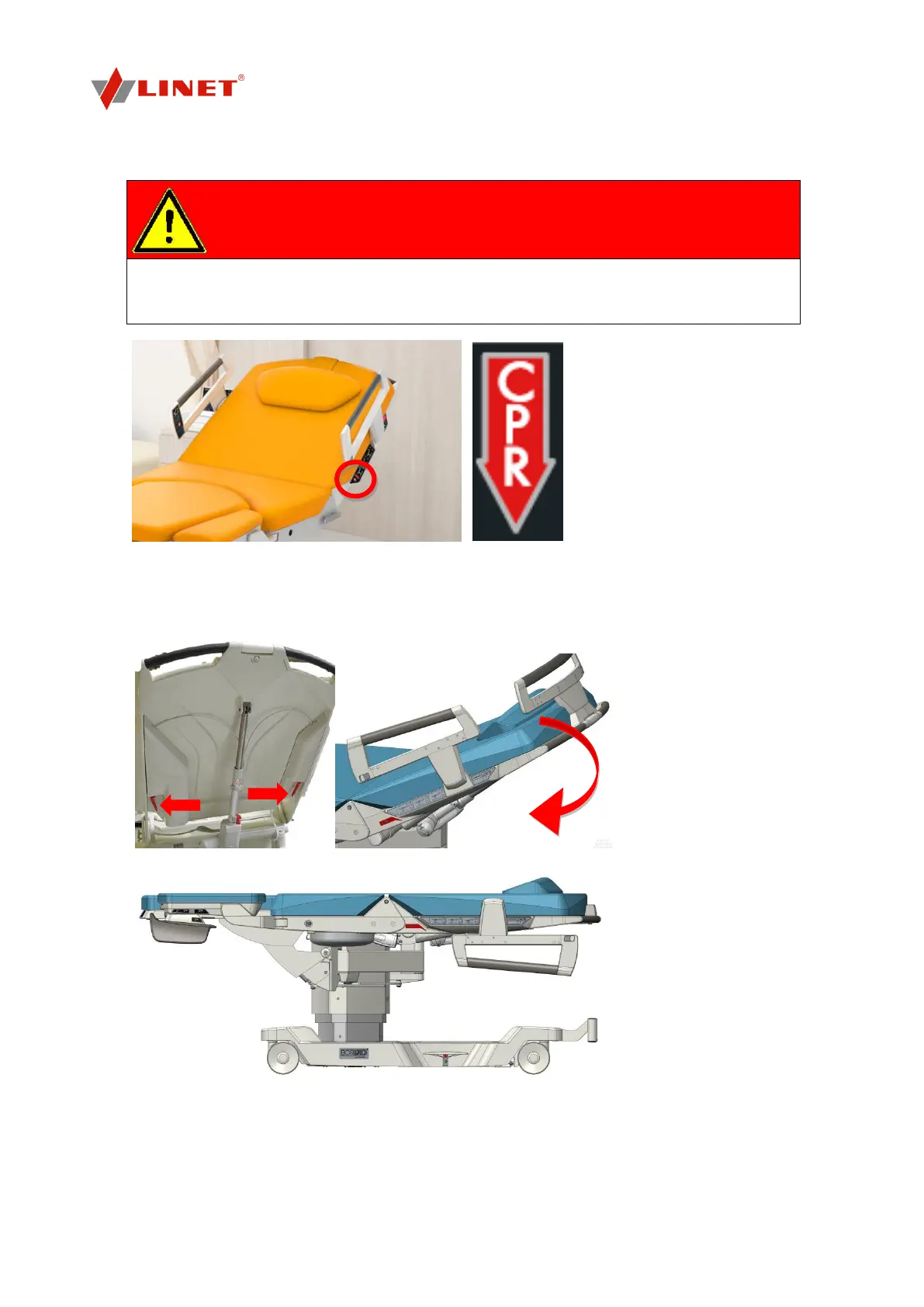 The CPR controller is marked with red information labels on both sides of the back section. The labels are