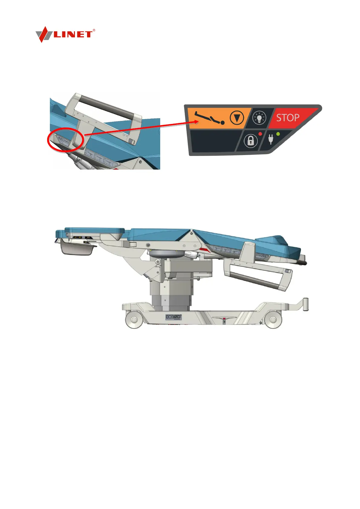 For positioning of the back section, push the above-marked button and hold it until the positioning comes