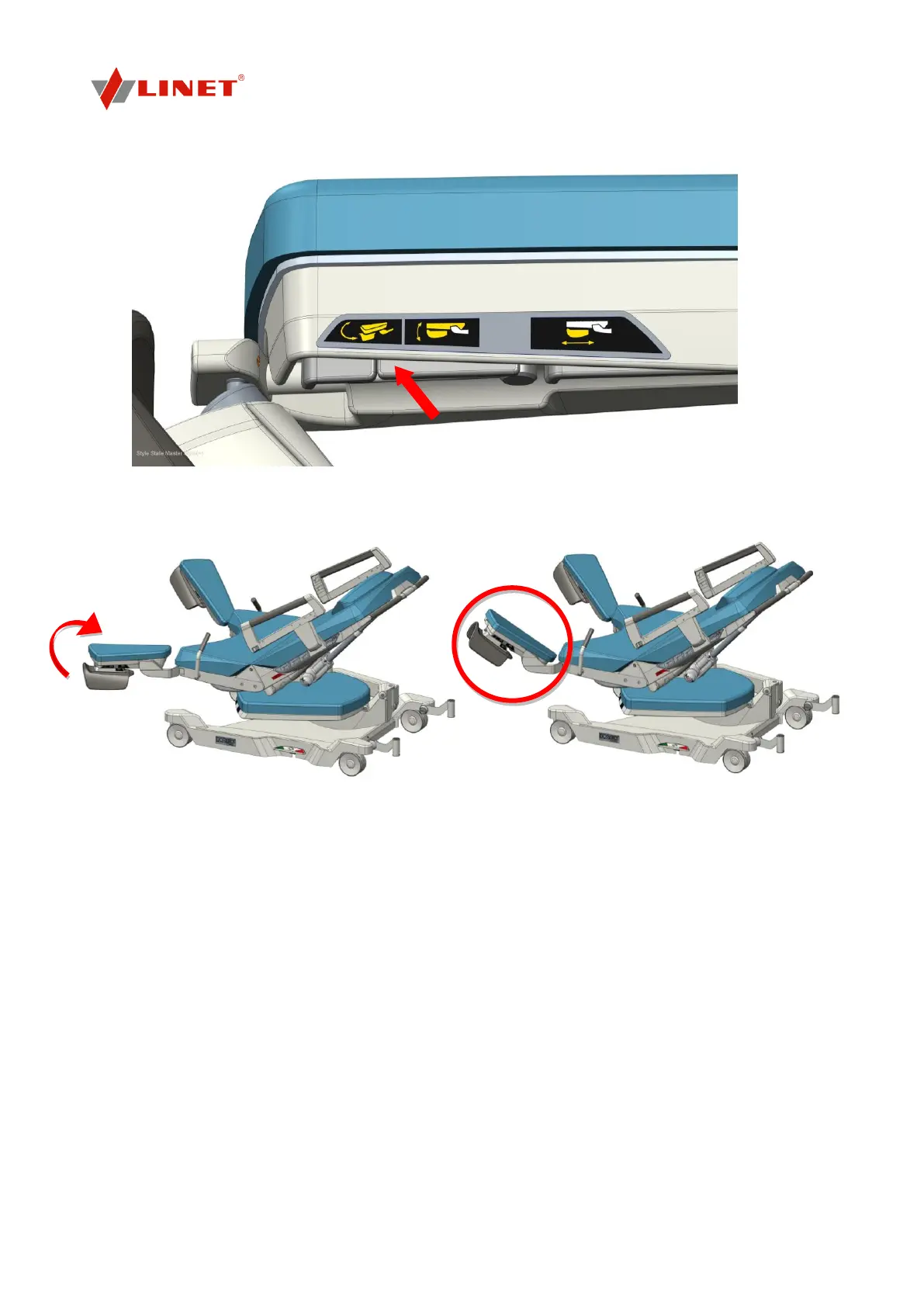 Then pull the „Tilting of the leg rest“control lever as on the picture below