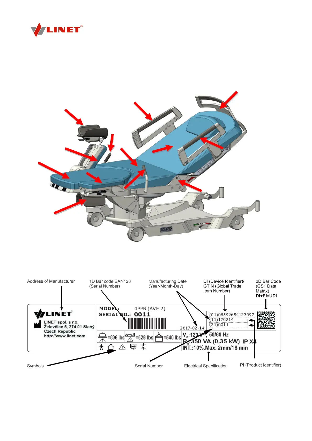 Sample of a manufacturing nameplate (label with UDI)