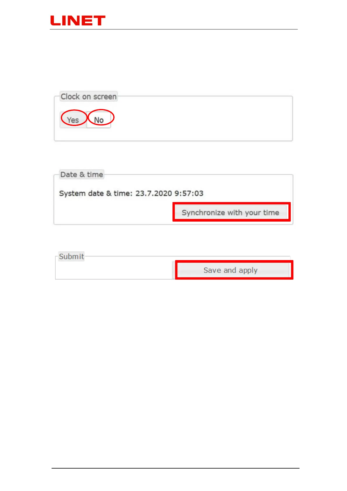 5.7.7 Time setup,,Clock on screen“