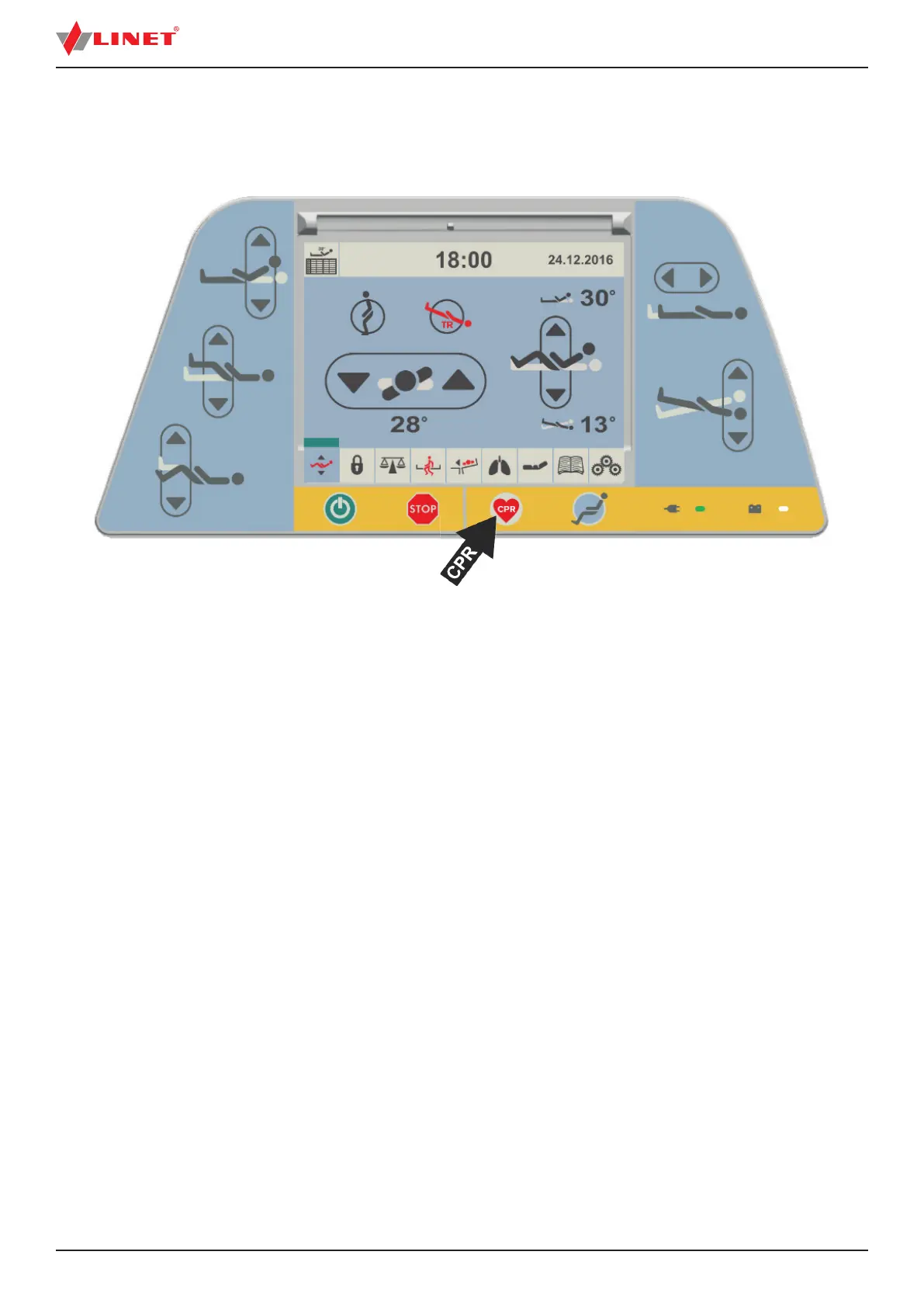 Cardiopulmonary Resuscitation Mode causes the mattres to de ate completely to facilitate resuscitation of patient. Typical de ation