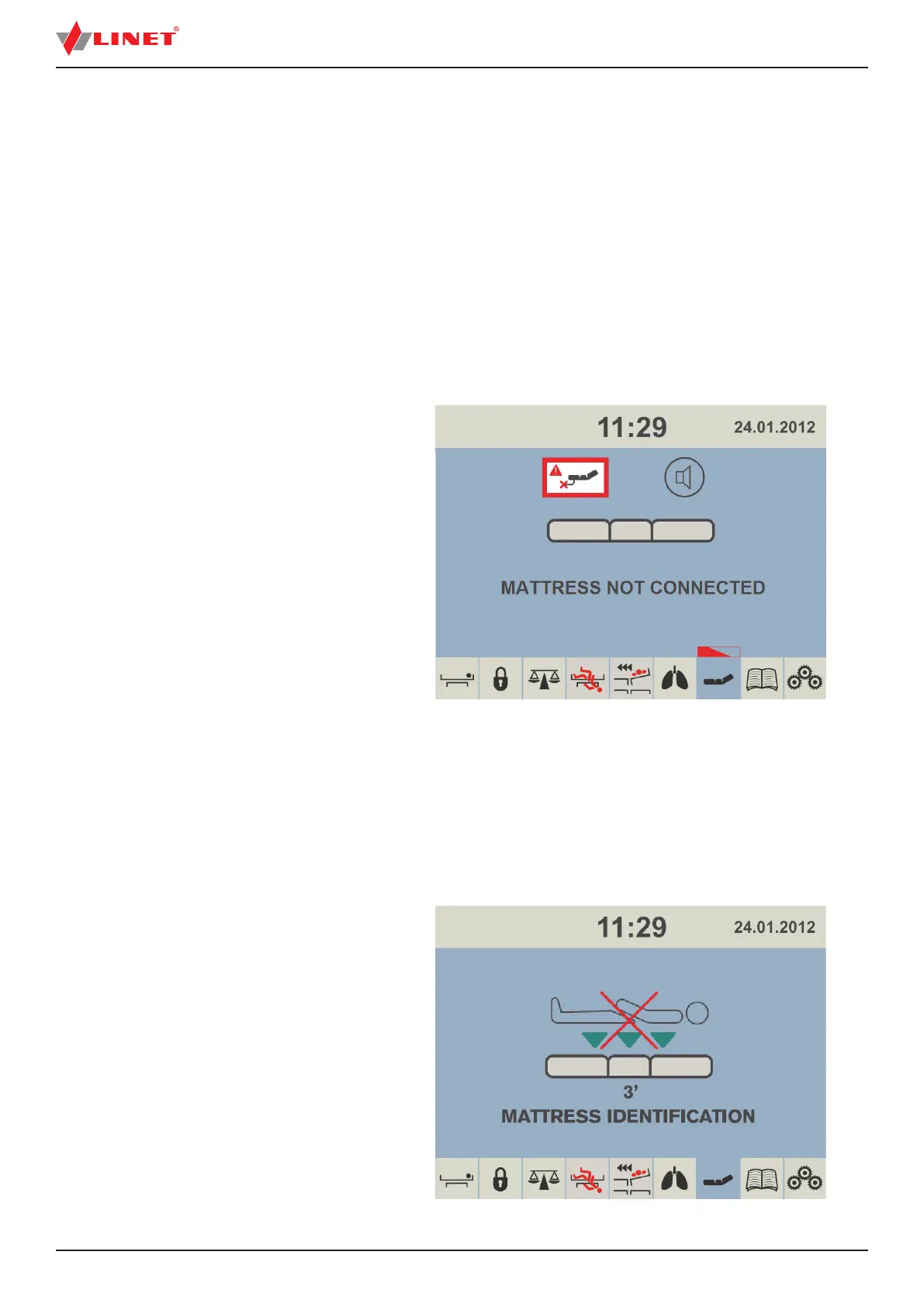 NOTE: Red strip above the mattress icon is ashing in this screen.