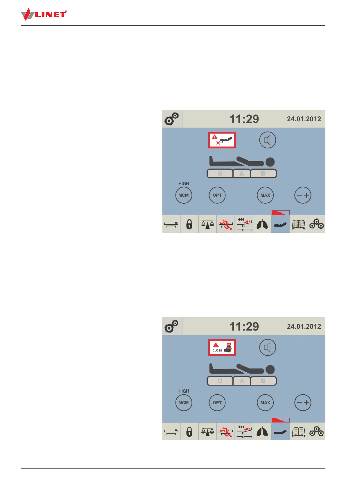 When CPR valve is opened and the mattress is in ating this screen appears.