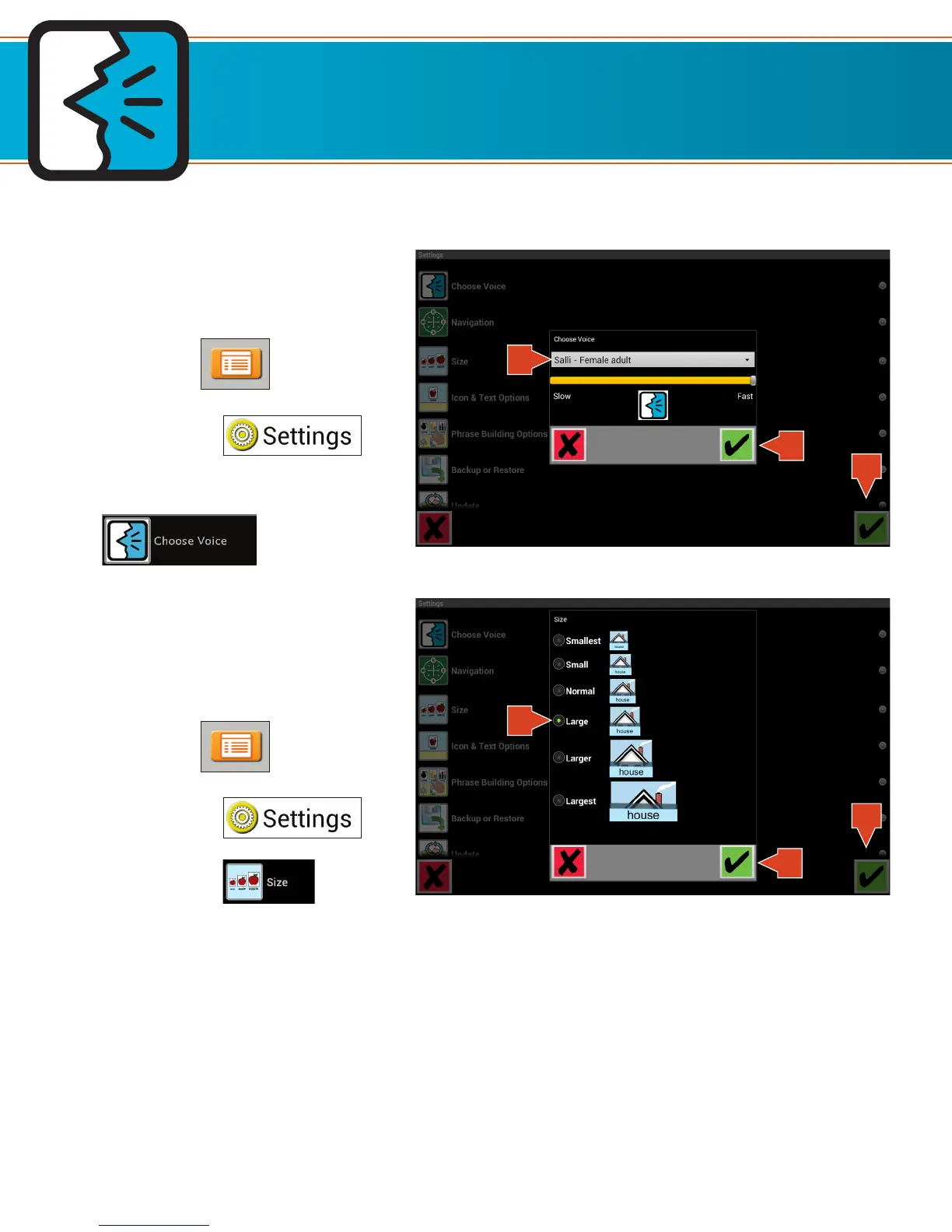 Lingraphica AllTalk - Quick Setup; Choose Voice; Size