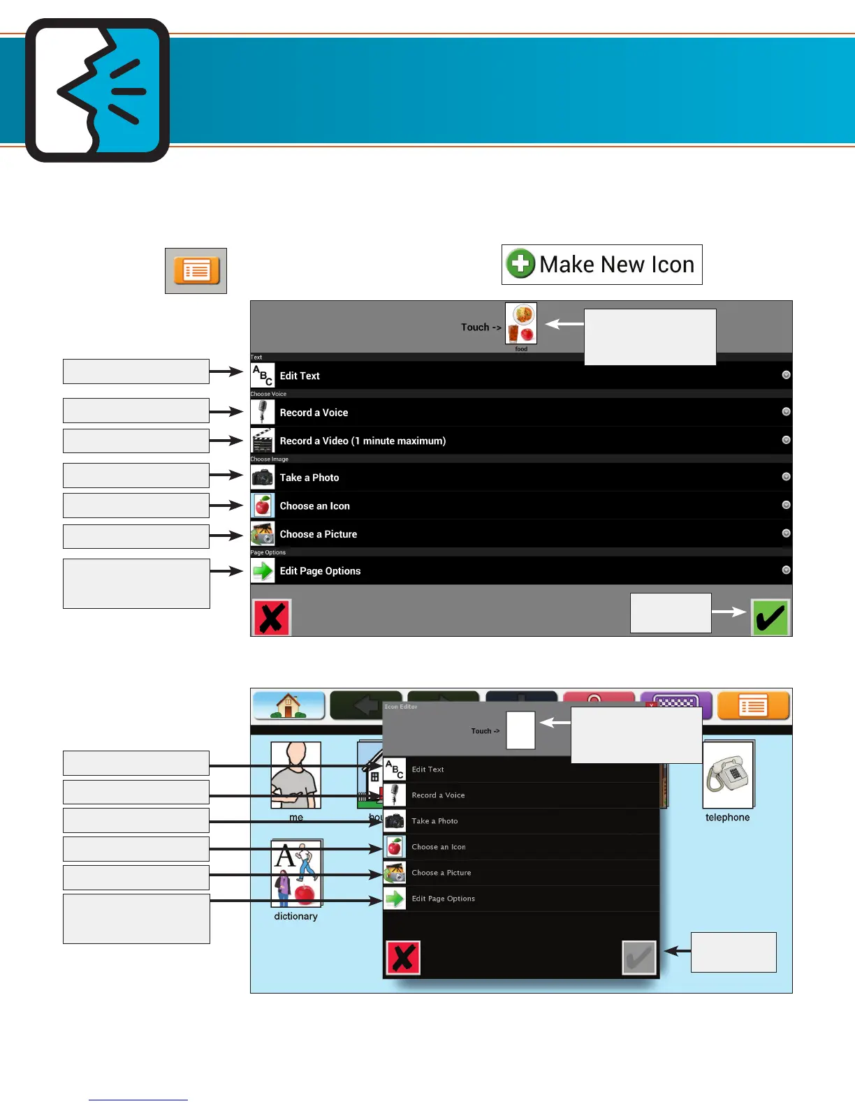 The Icon Editor is where you assign a name, image, and voice to an icon, and add or remove pages behind an