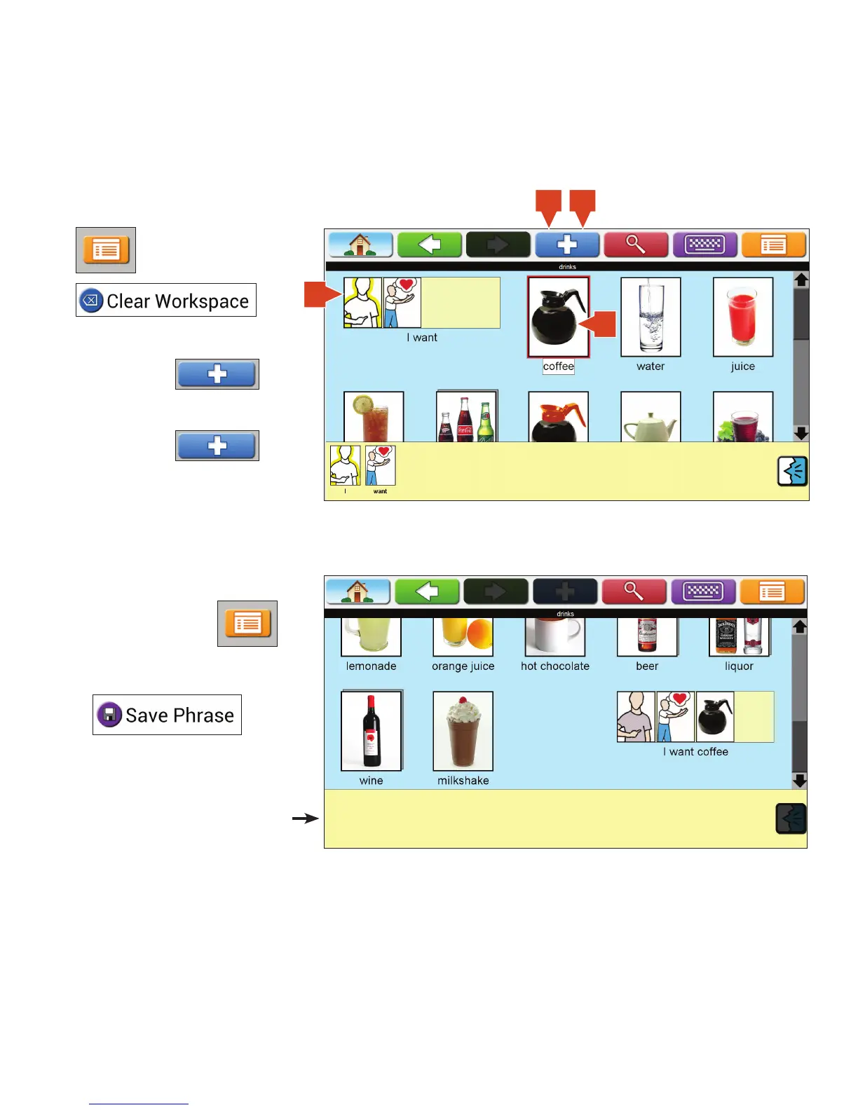 3. Touch icon to be added to phrase.