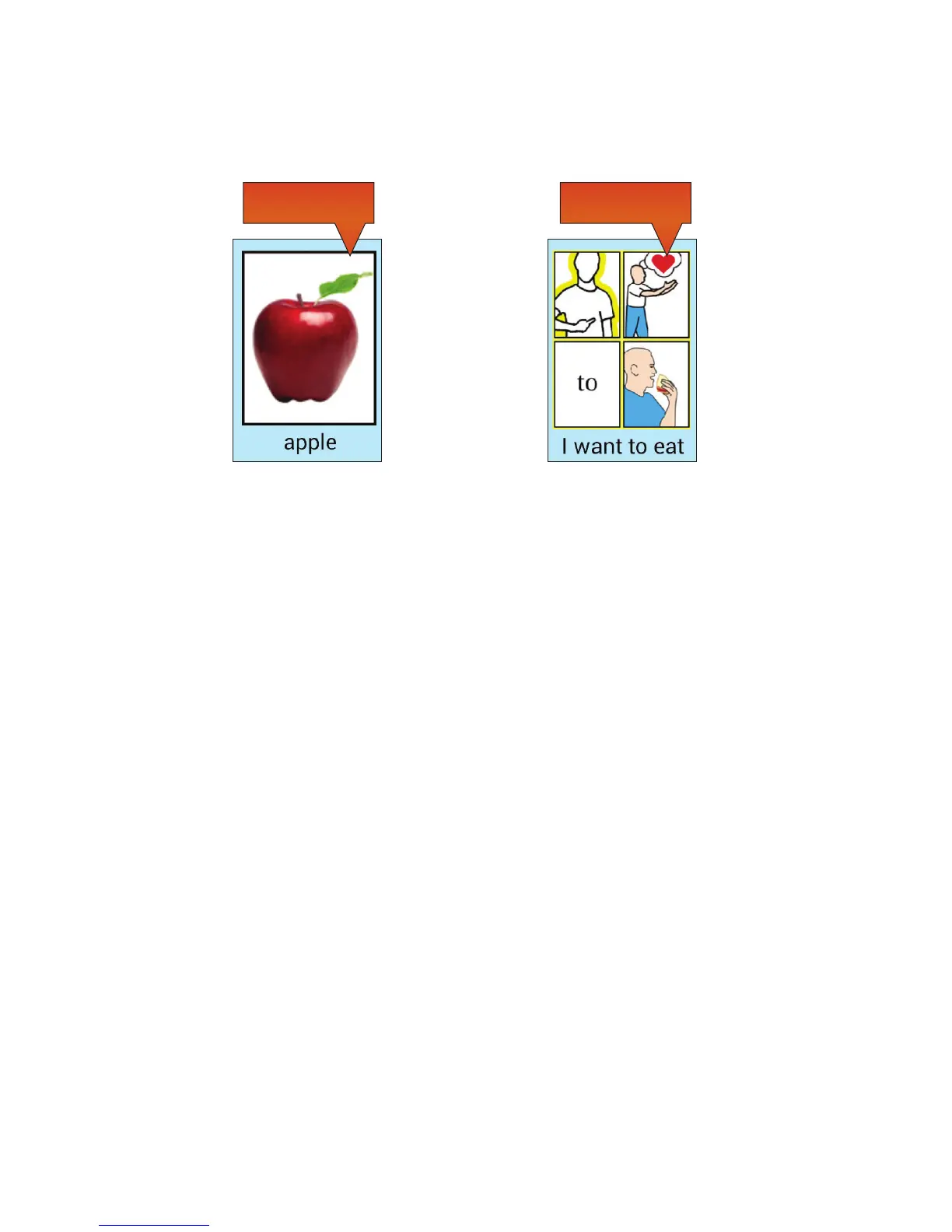 When you touch an icon, it speaks and increases in size and the text is presented underneath. We call this whole