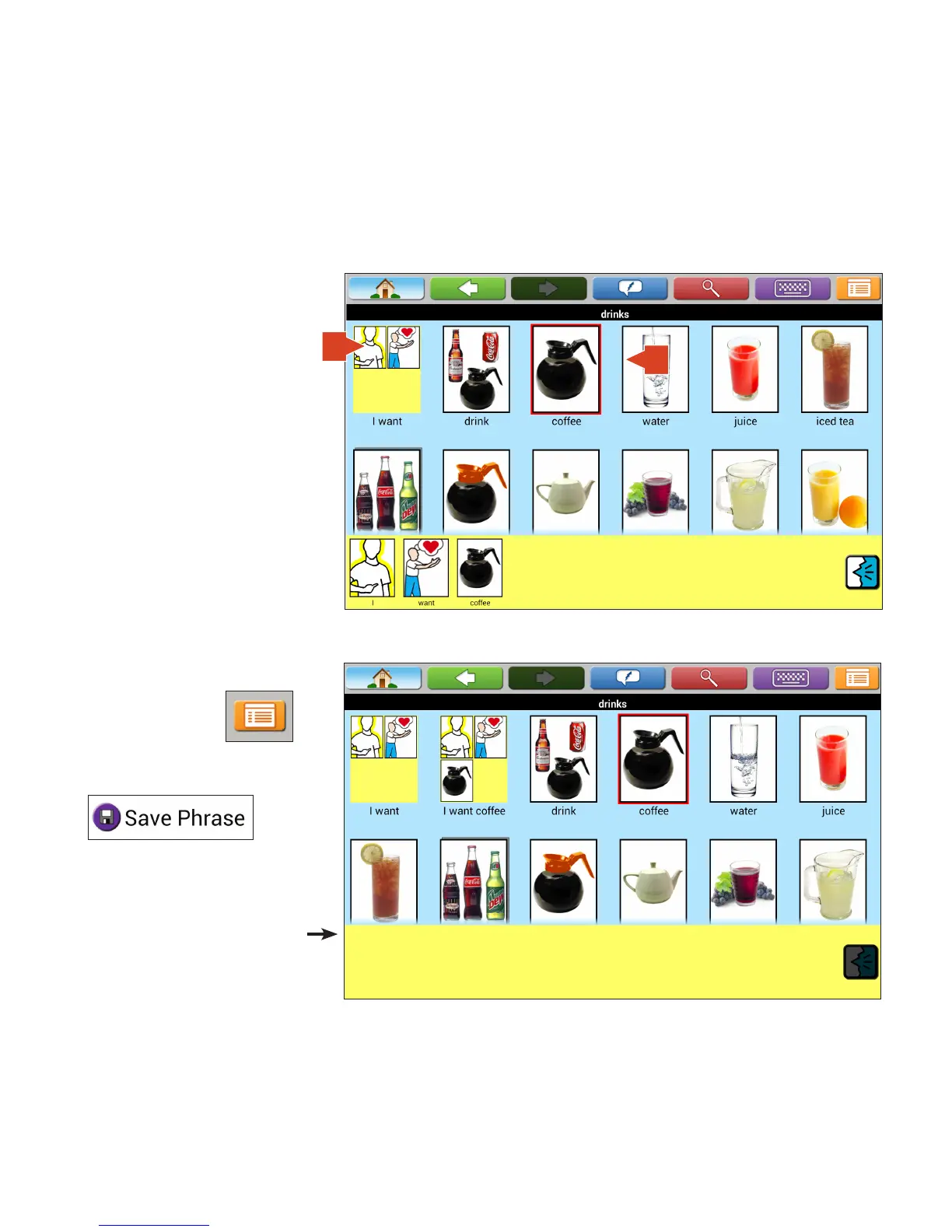 Lingraphica TouchTalk - Using Phrase Icons and Strips; Creating Phrase Icons Without Typing on Touch Talk and MiniTalk