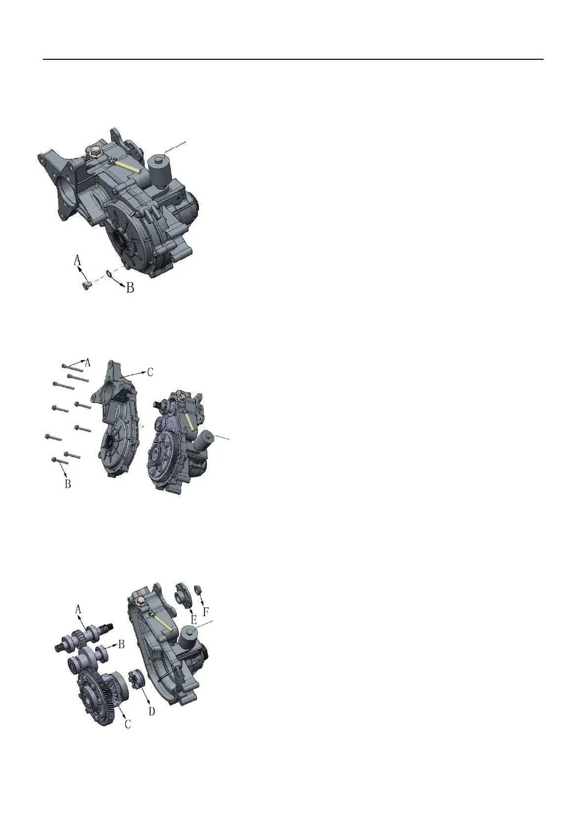 3. Remove the Input Gear A and Mid Gear Shaft B and Diff Case Assembly C and Clutch Gear