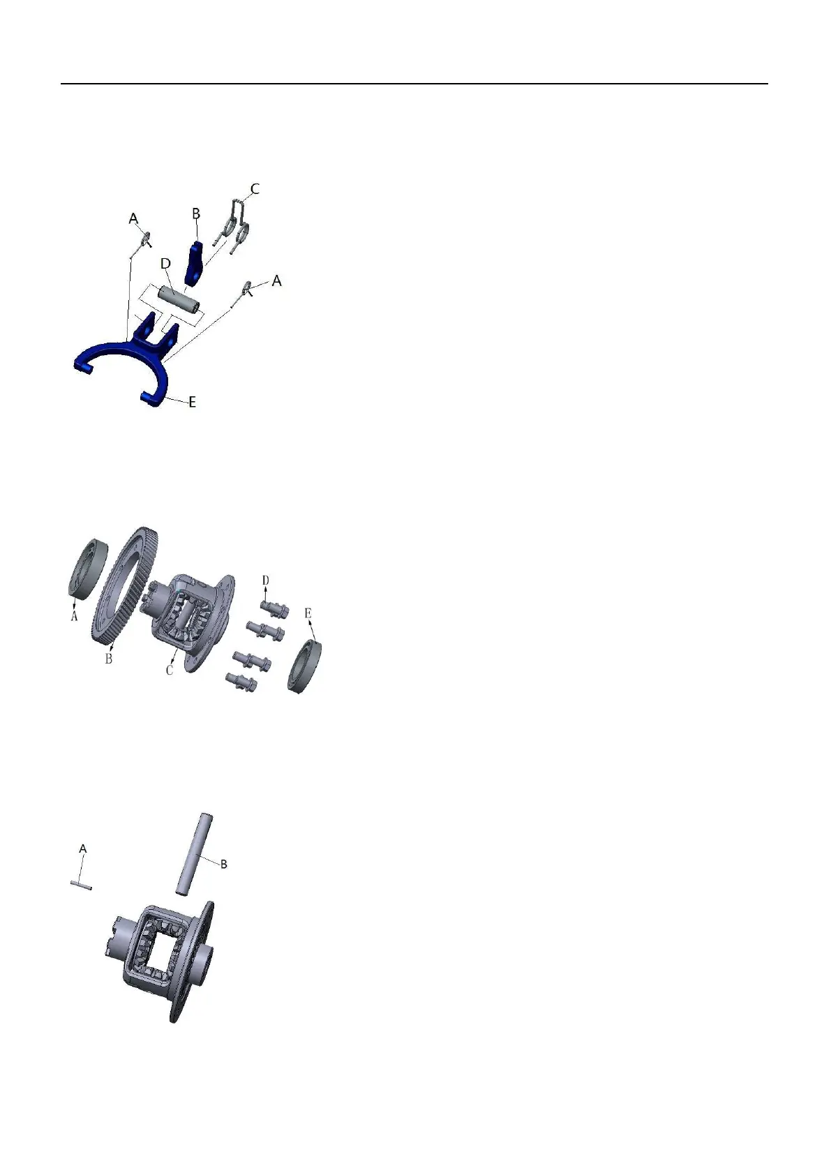 the Shift Lever B and Shift Lever Spring C and Shift Bar D and Shift Yoke E.