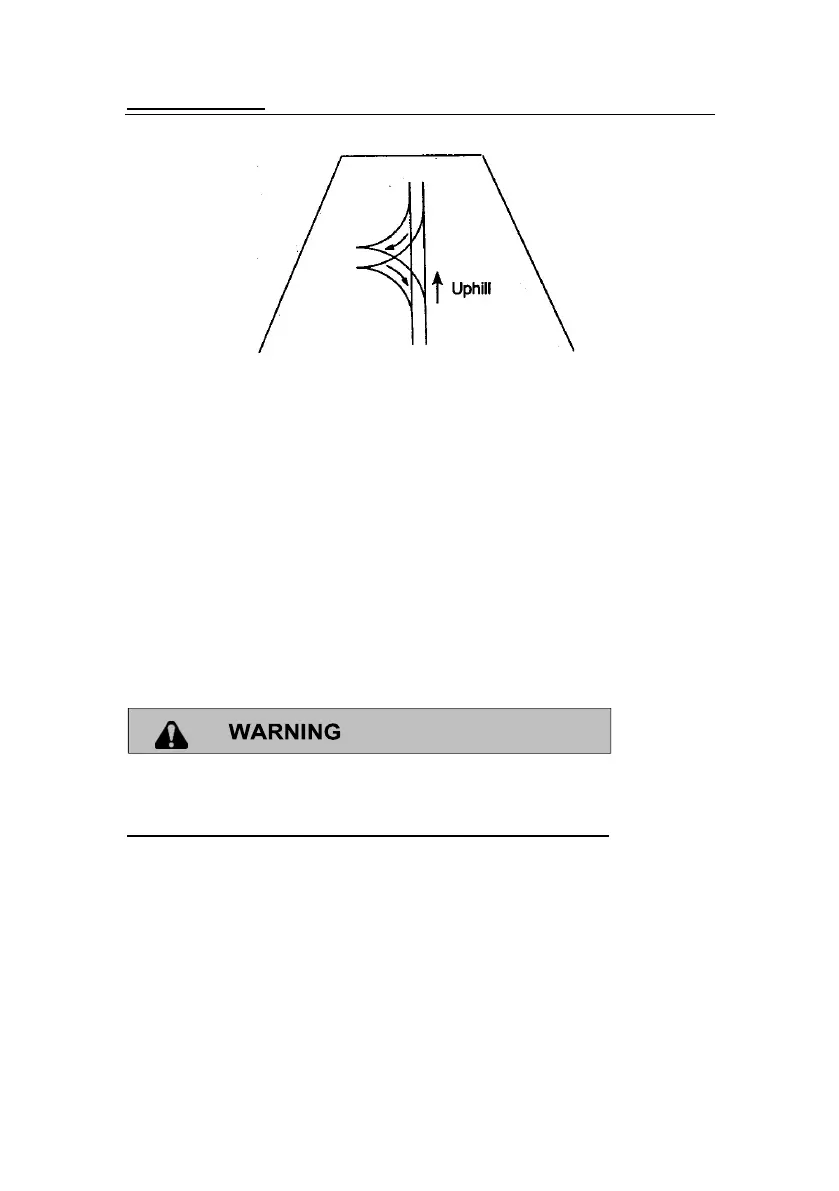 Stop and lock the parking brake while maintaining body weight uphill.