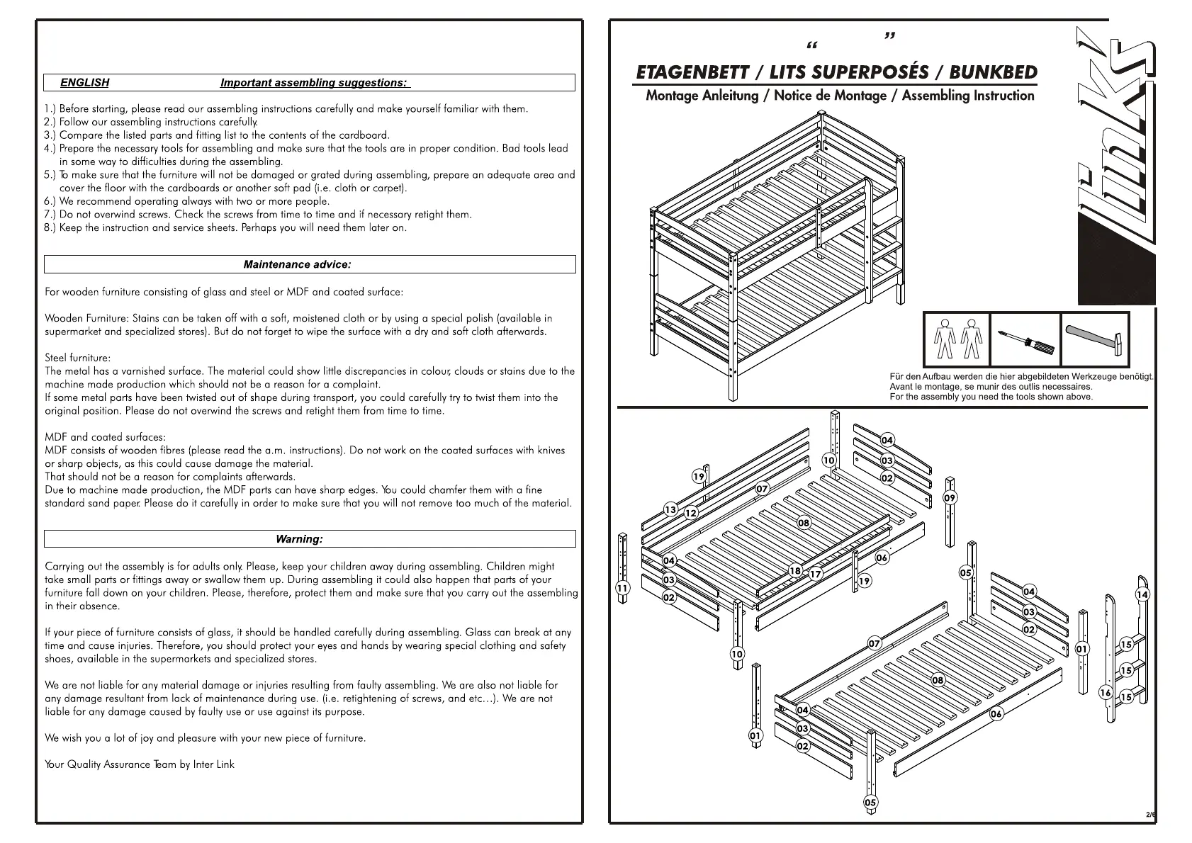 Link's Rick - Important Assembling Suggestions; Maintenance Advice; Assembly Safety Precautions