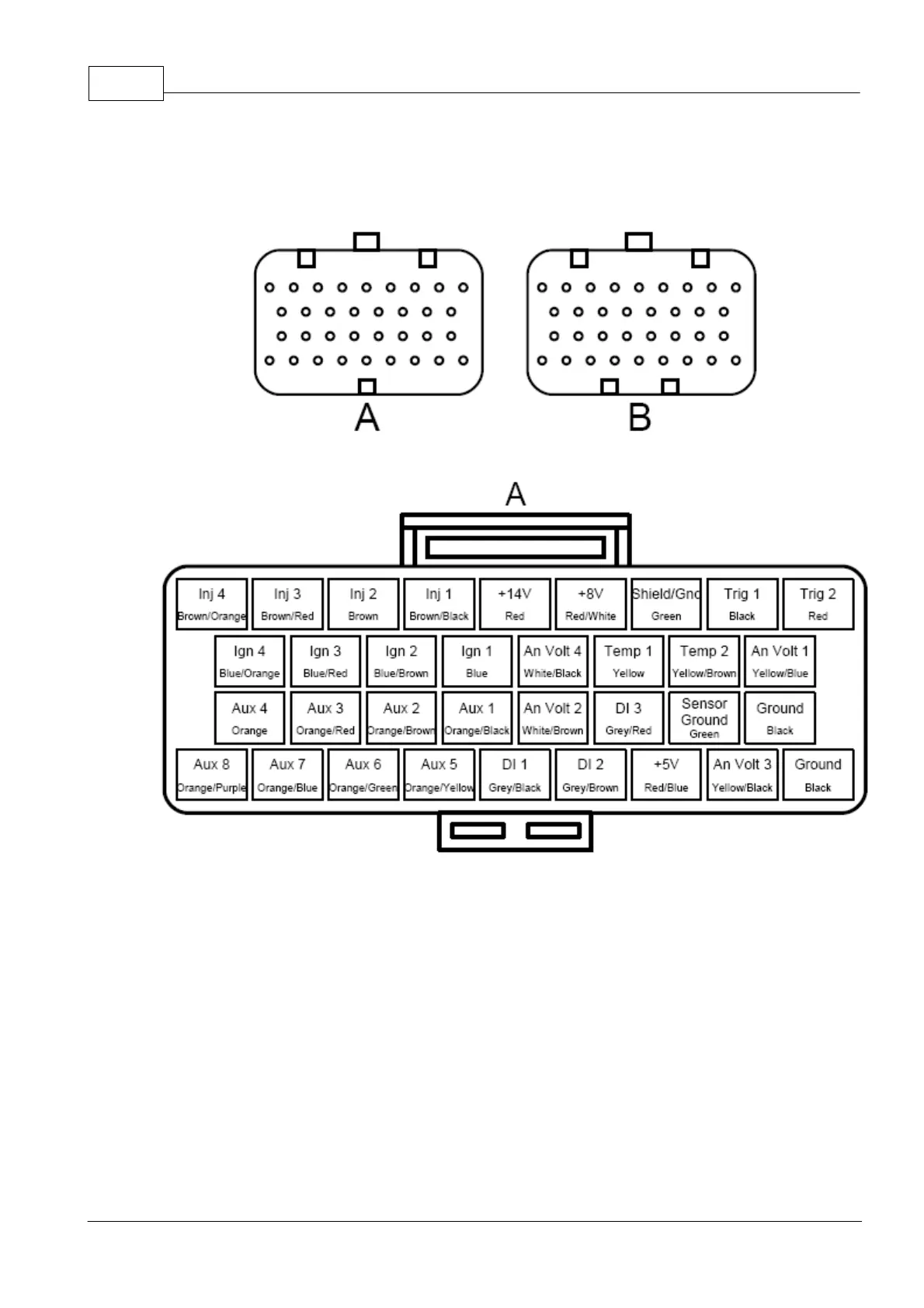 Viewed looking into ECU header (or wire side of loom connector)