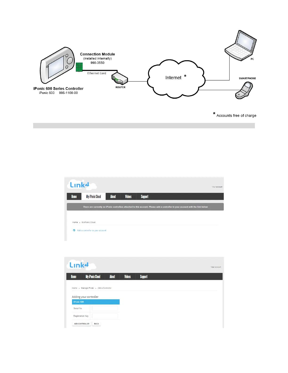 iponic.link4cloud.com you can add your controller to your link4 internet account. To view your serial number and