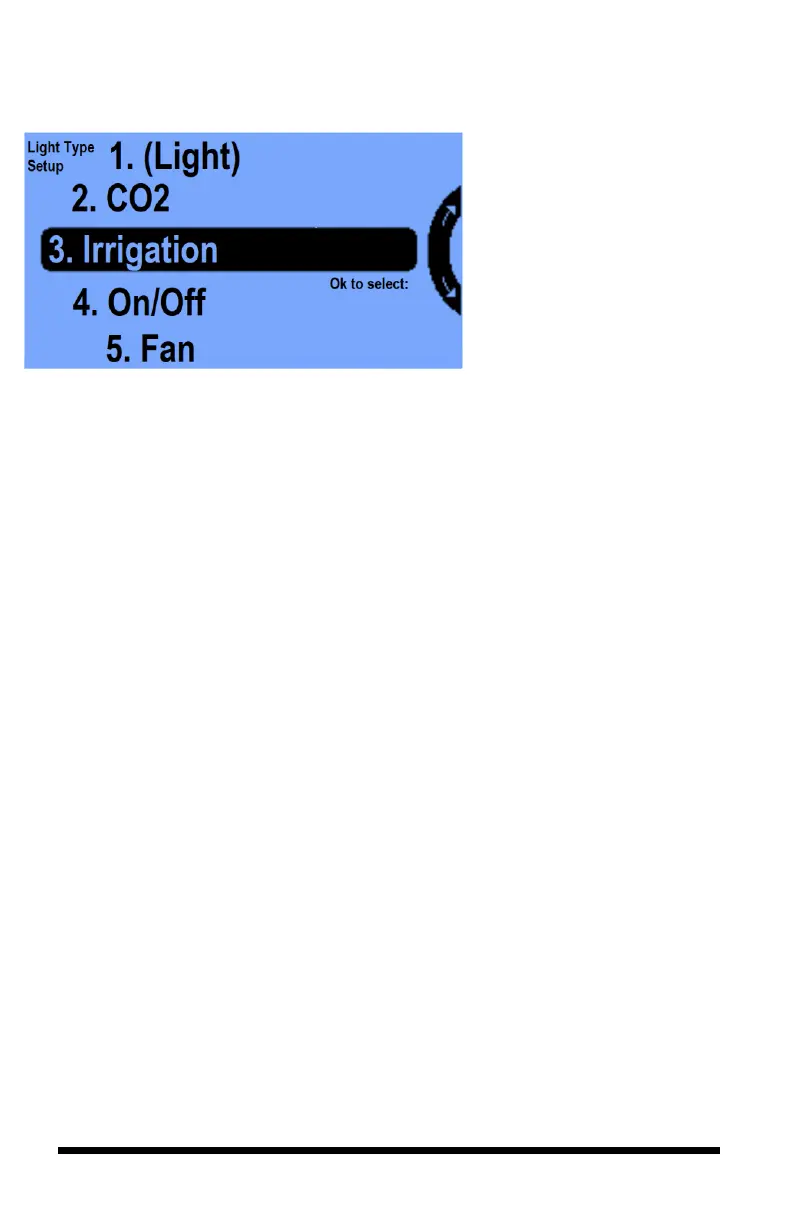 3. Irrigation – runs an irrigation cycle, turning