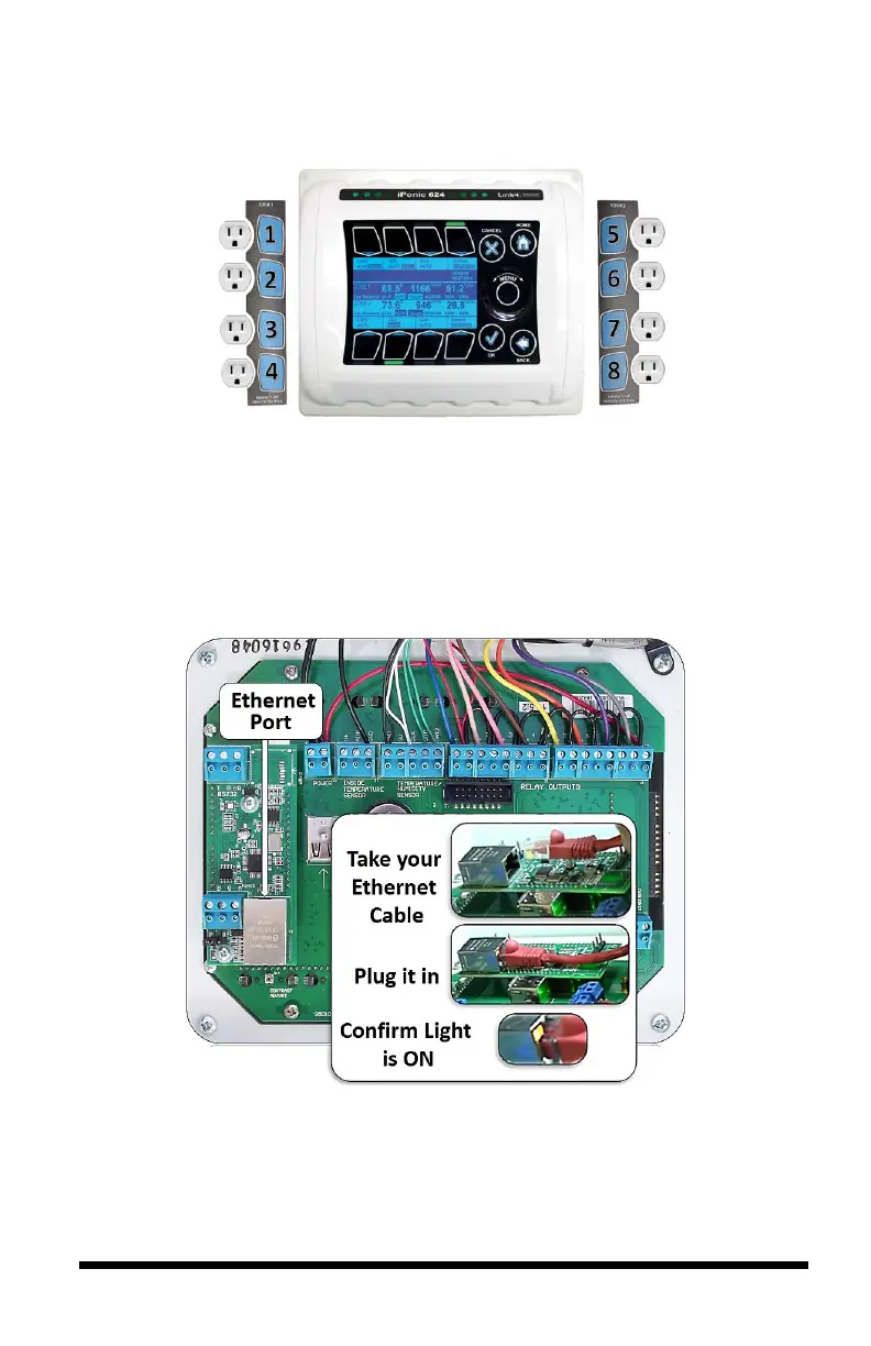 Note: The Ethernet port for the Internet is inside the iPonic 624 controller. Before