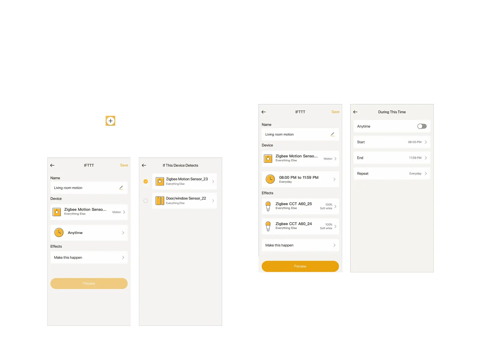 Note: to perform IFTTT, make sure there is a motion sensor, or