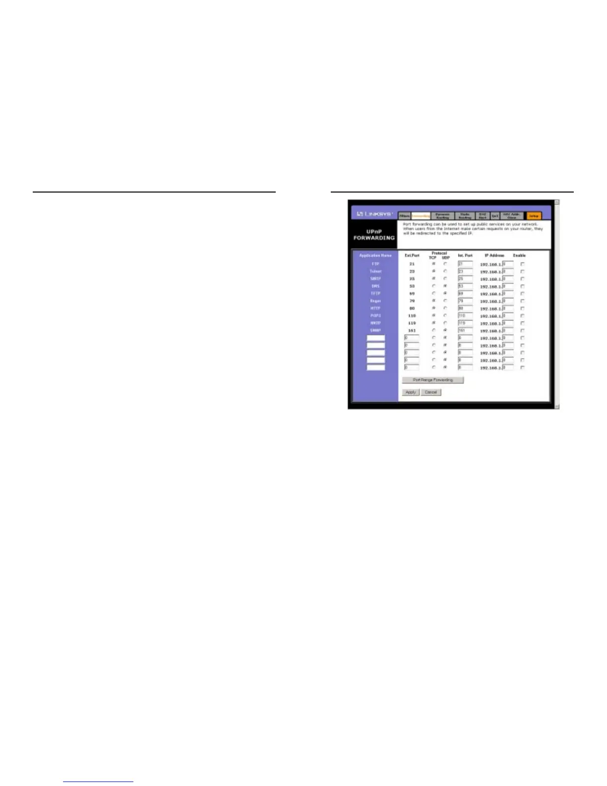 applications. This screen can be accessed by clicking the UPnP Forwarding
