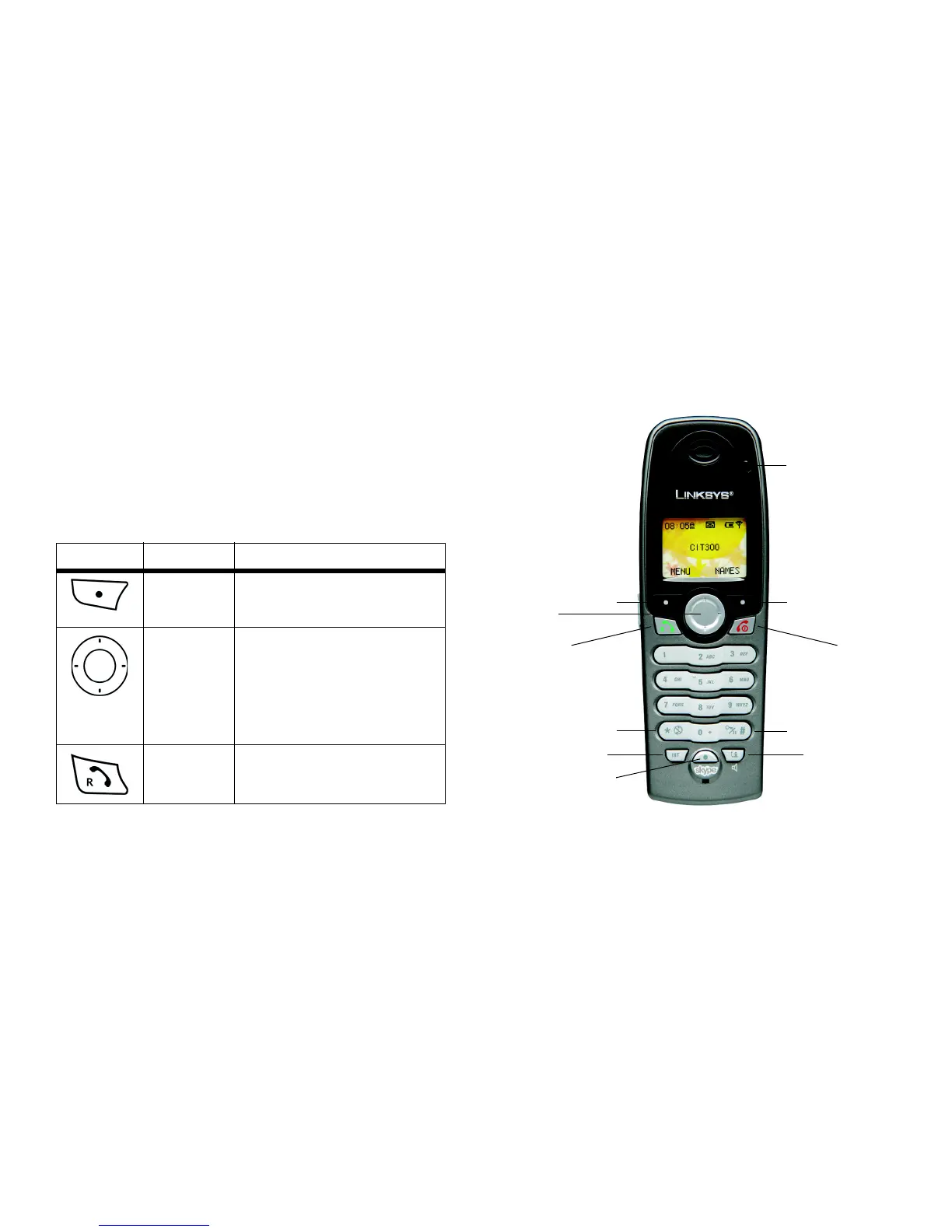 LED Red. The LED lights up when the handset is in use. It flashes when there is an