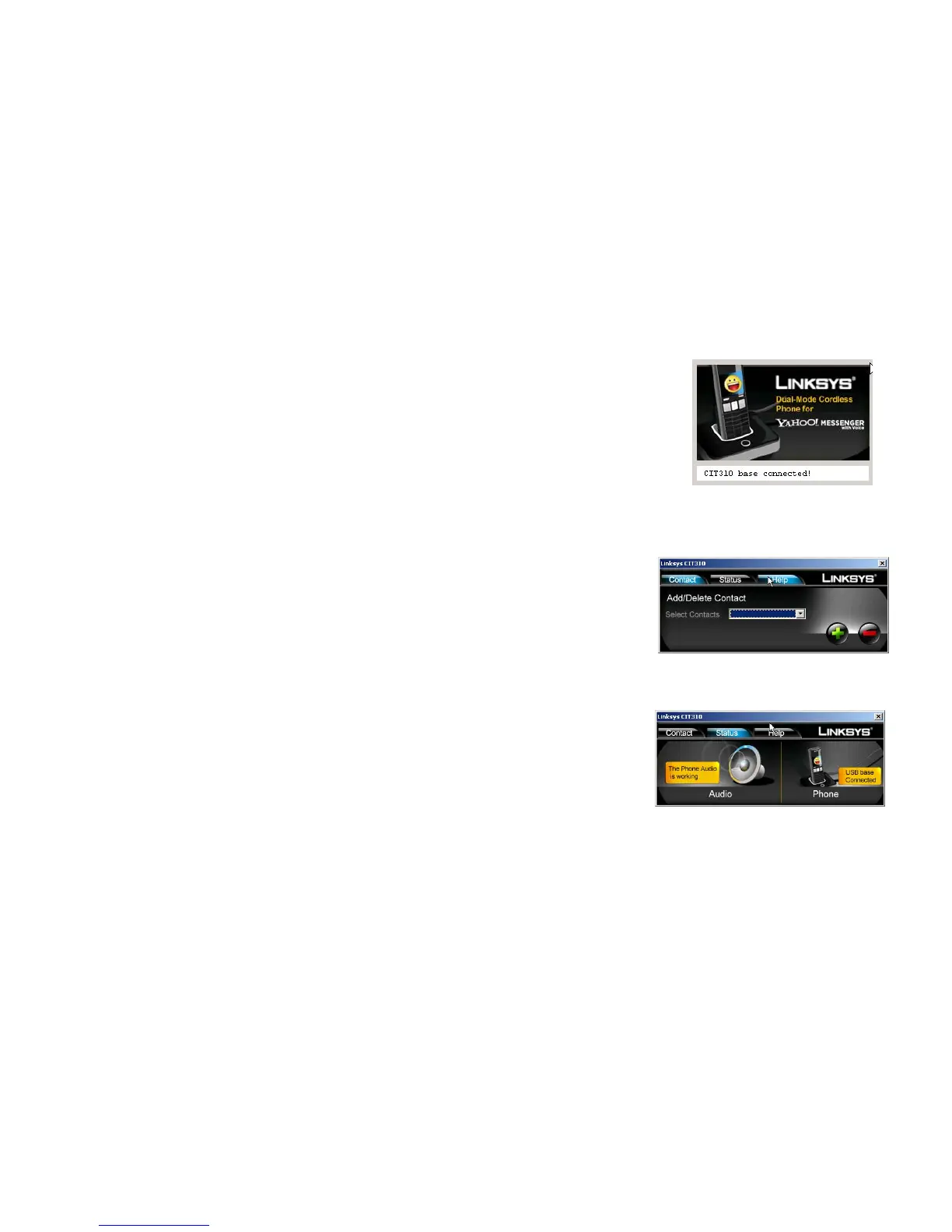 Linksys CIT310 icon in your system tray. Select Open Linksys CIT310. You can then choose the Contact, Status