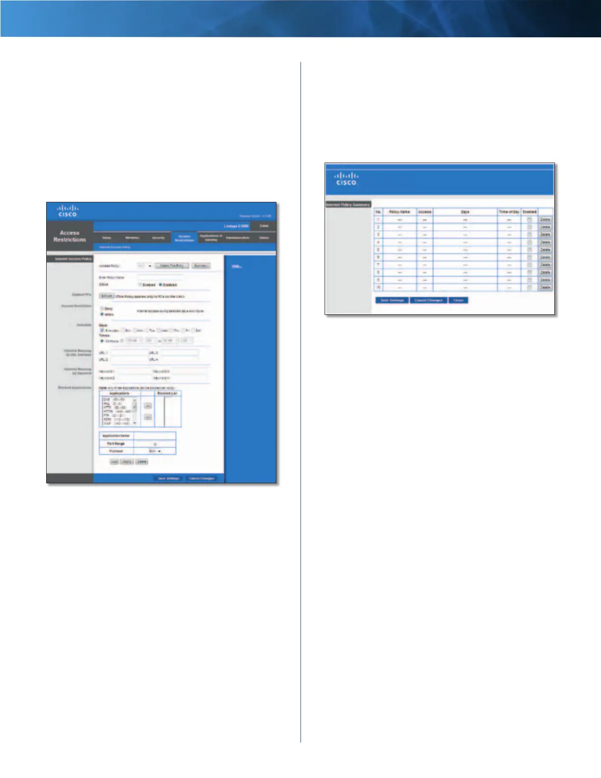 Policy Name, Access, Days, Time, and status (Enabled). To