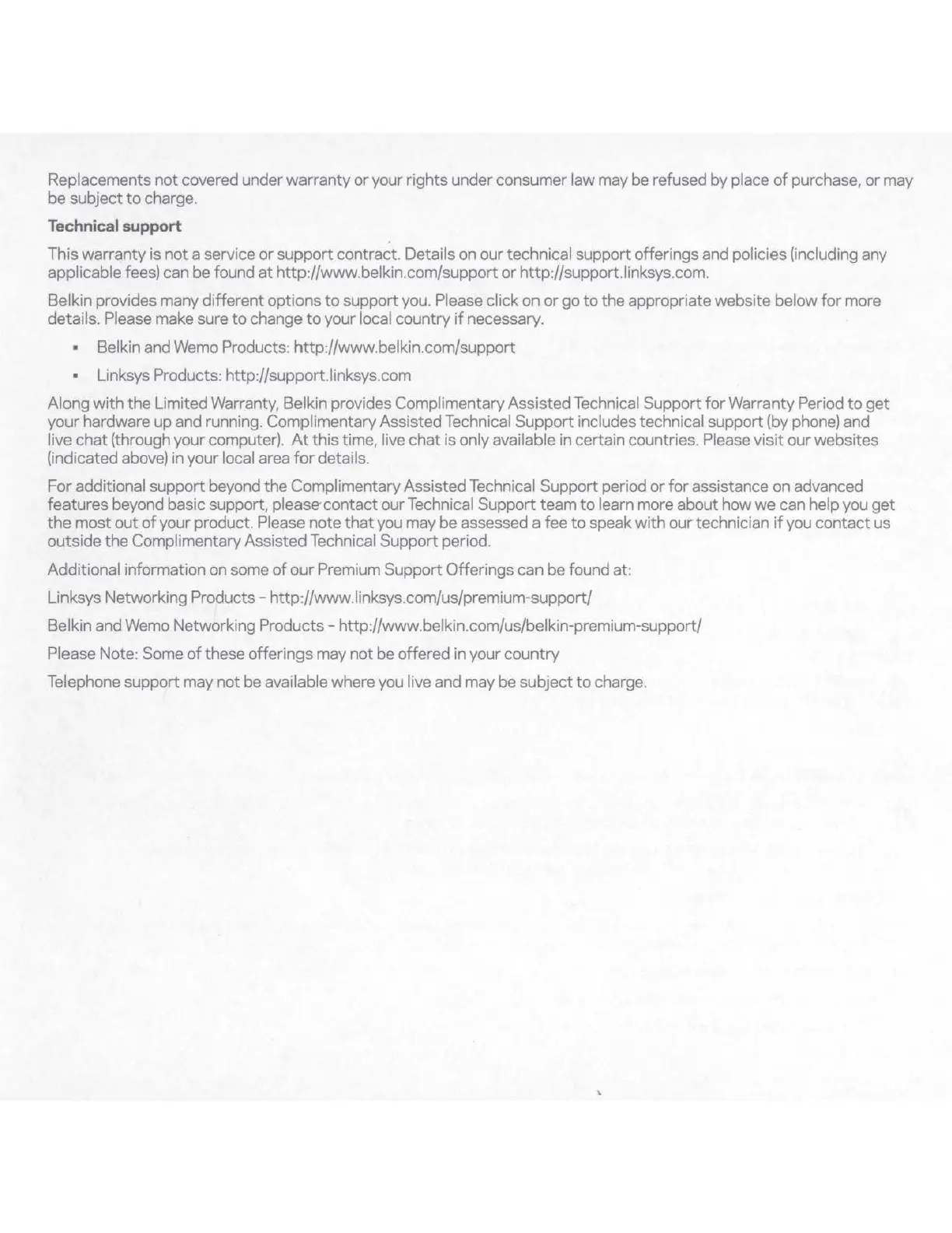 the Limited Warranty, Belkin provides Complimentary Assisted Technical Support