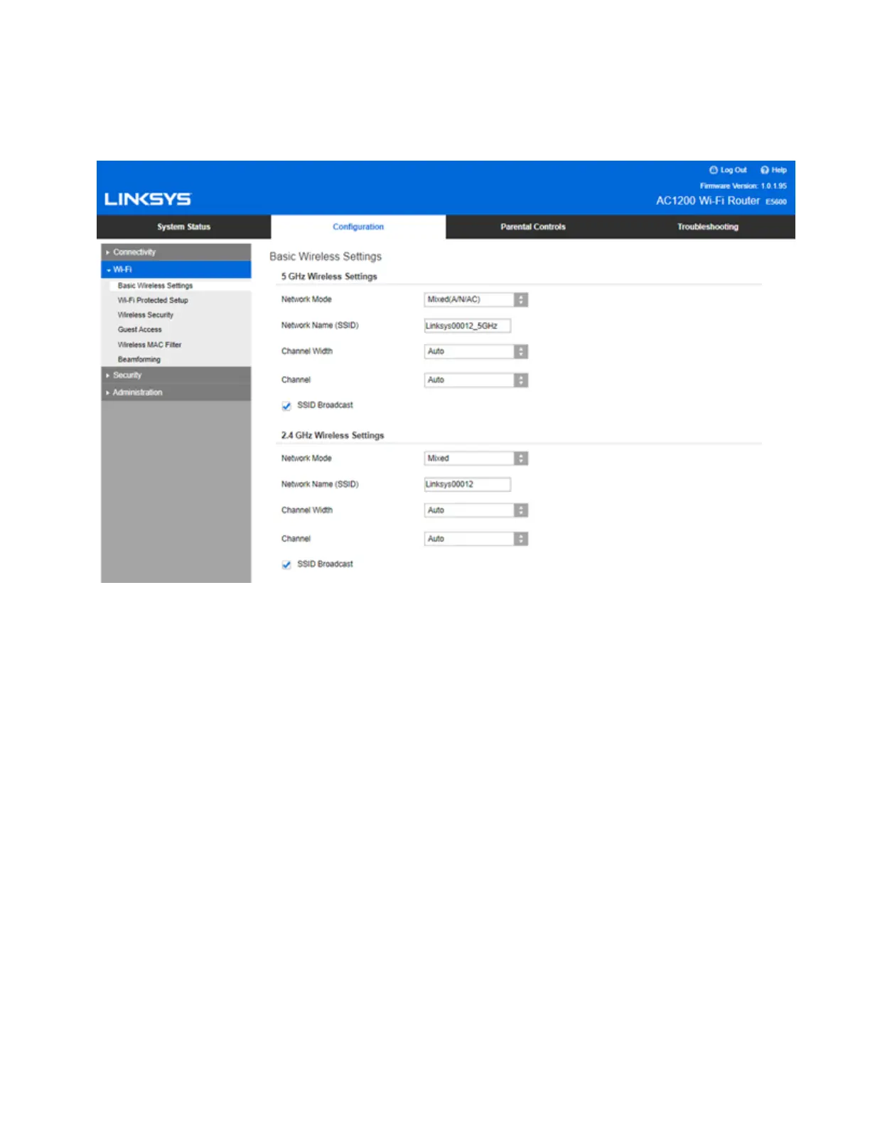 Lưu ý—Bạn có thể chọn Hỗn hợp, Chỉ Không dây-N/AC hoặc Tắt cho băng tần 5 GHz. Nếu bạn