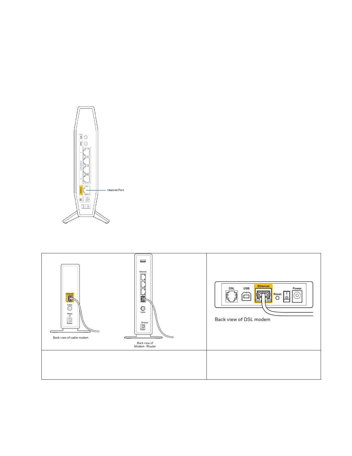 tersambung erat ke port Internet berwarna kuning di bagian belakang router dan pada port