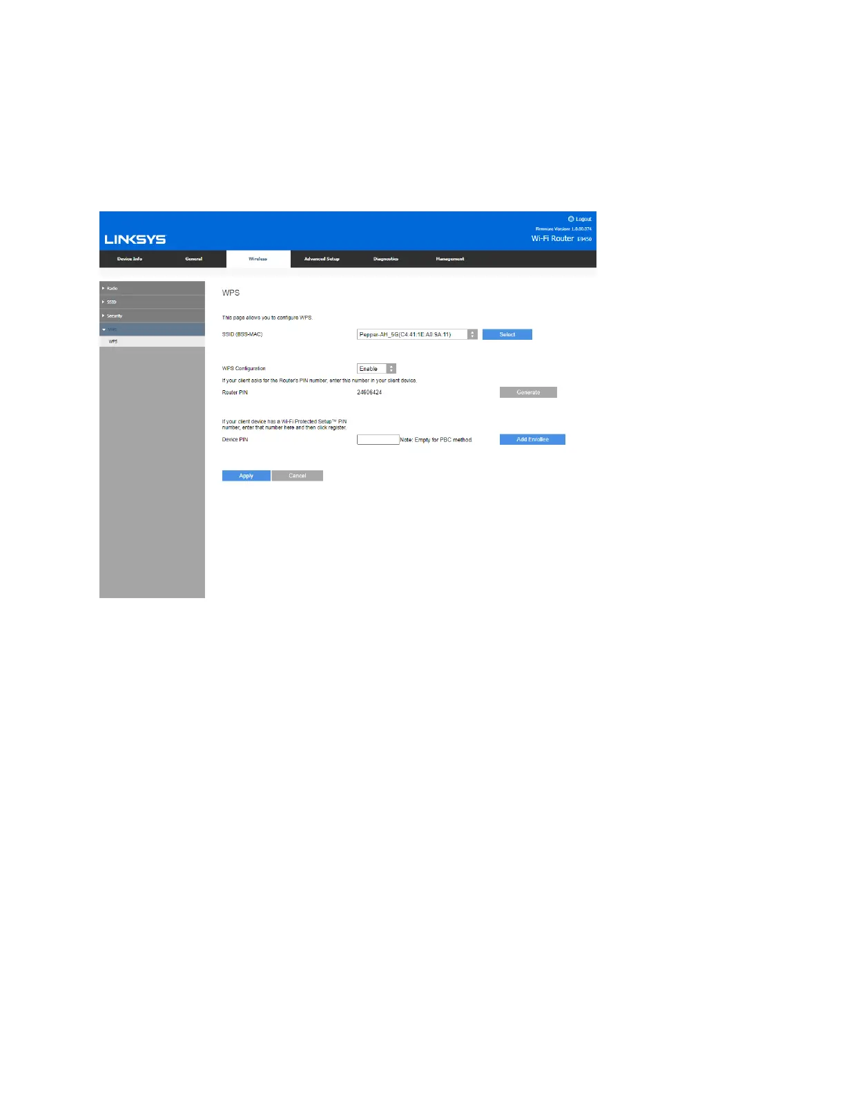 Protected Setup. Choose an SSID and enable WPS configuration. Enter the PIN for devices that