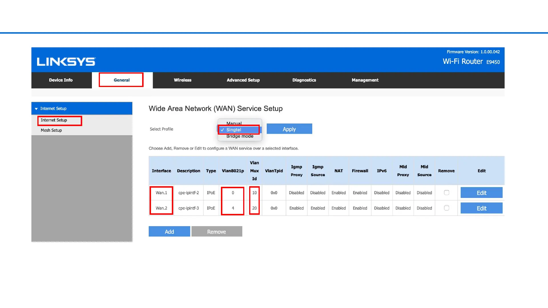 Singtel Profile will have DHCP Option 60, IGMP Proxy, DNS Forwarding, Static Router for Multicast STB and