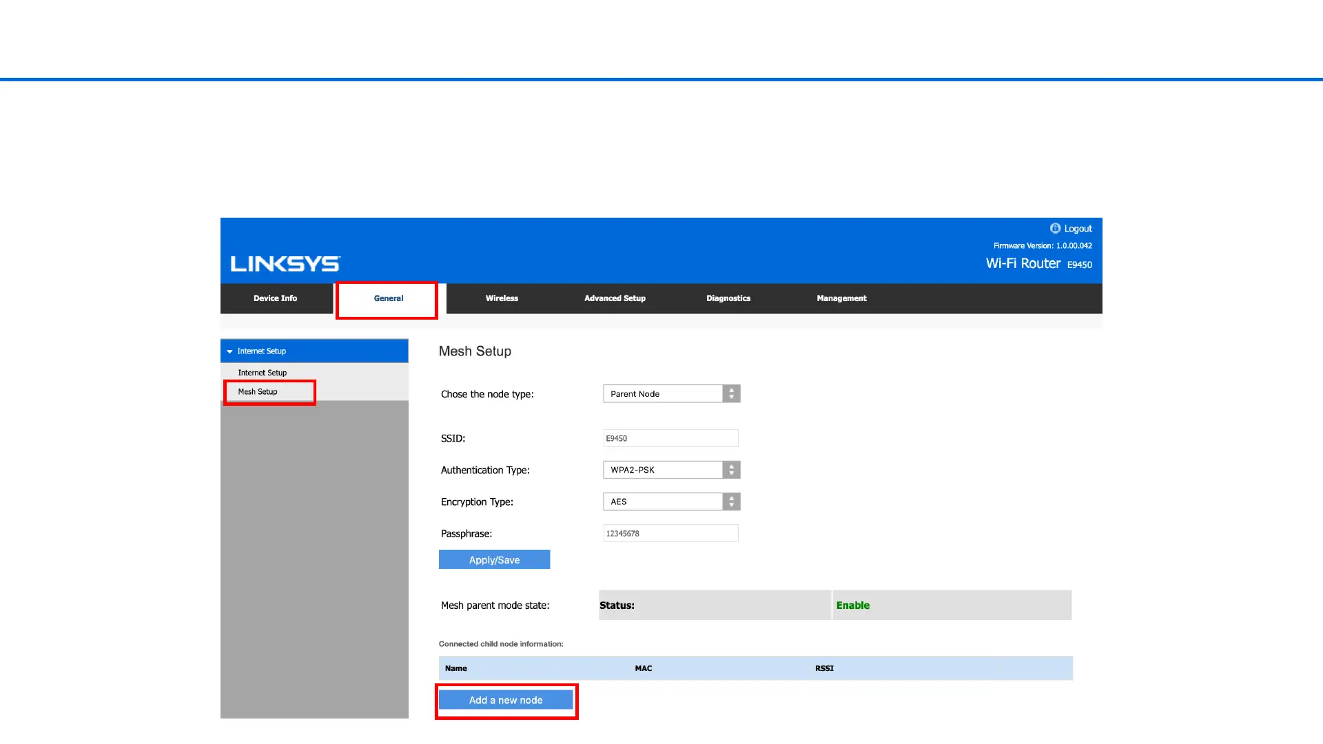 Adding additional nodes of E9450 (Mesh Parent mode)