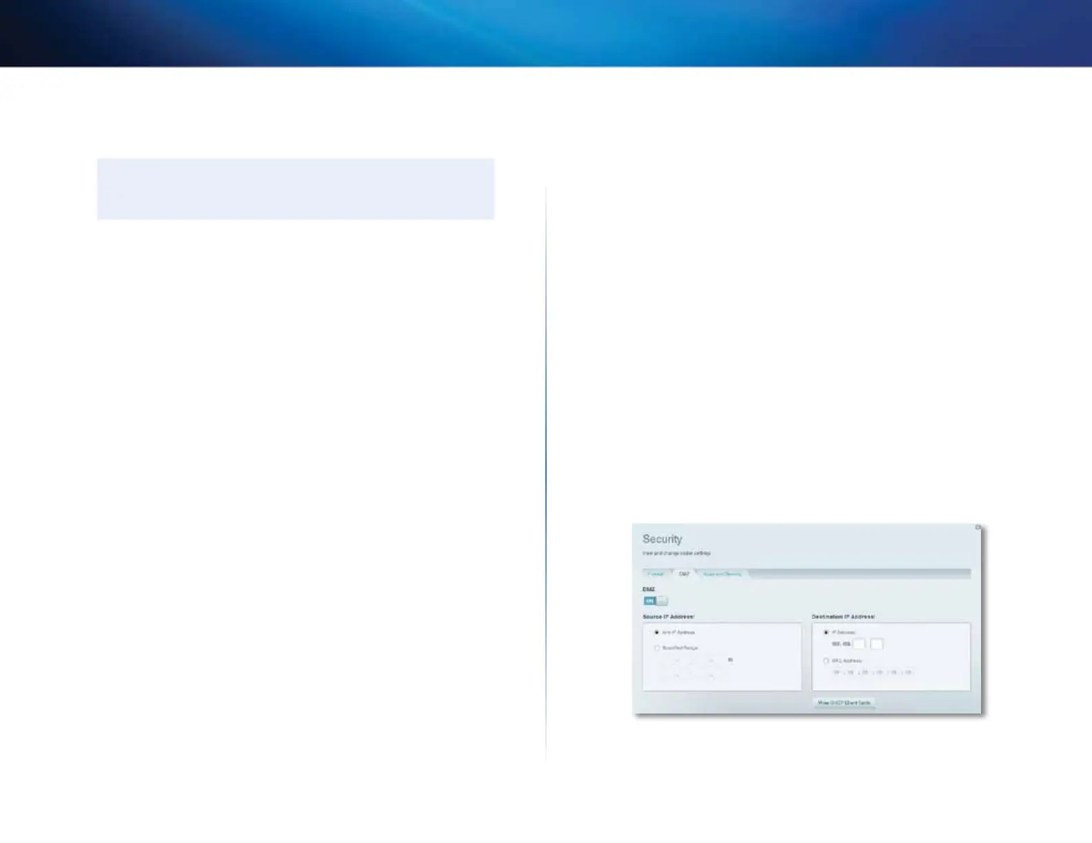 security risks to the device that you designate for the DMZ. The DMZ device is