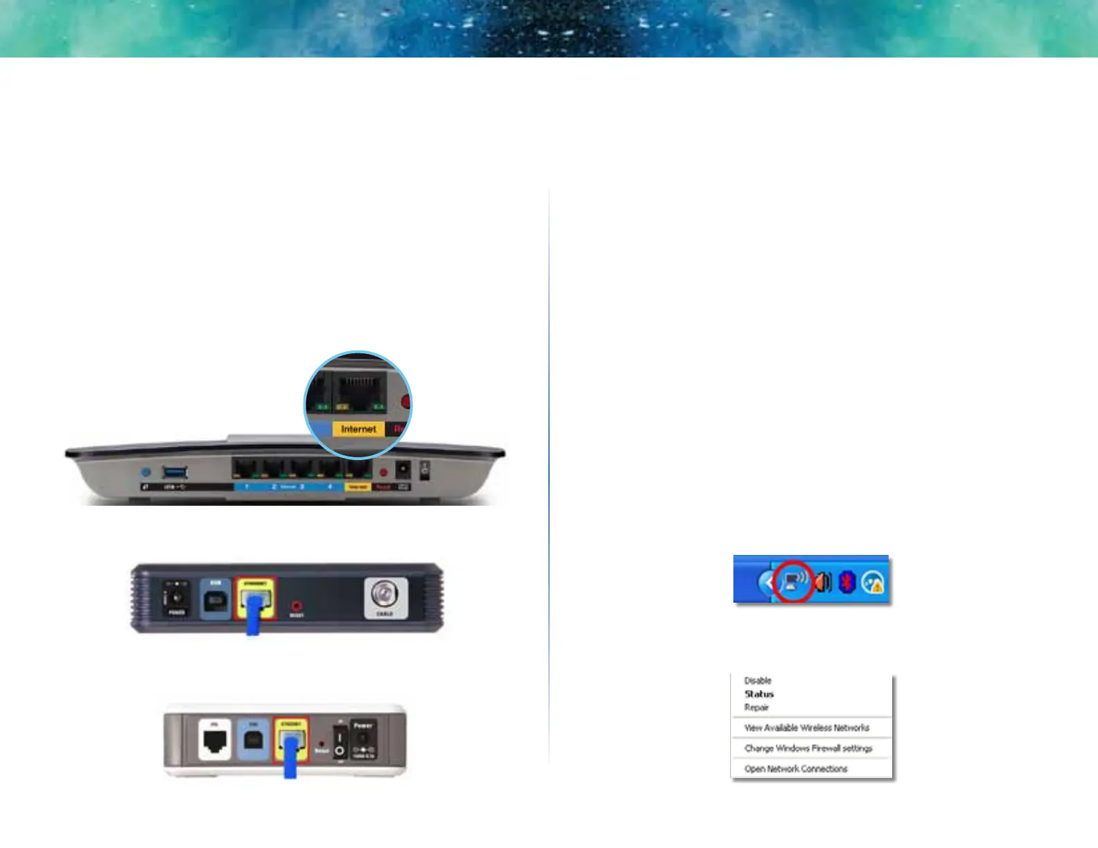 internetovému portu na zadní straně směrovače a kpříslušnému portu na