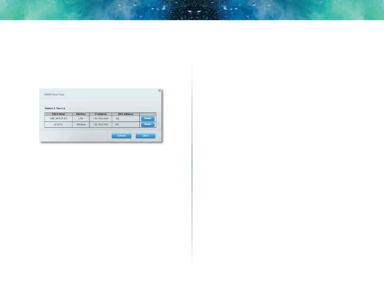 DHCP Client Table (afficher la table des clients DHCP). L'écran DHCP