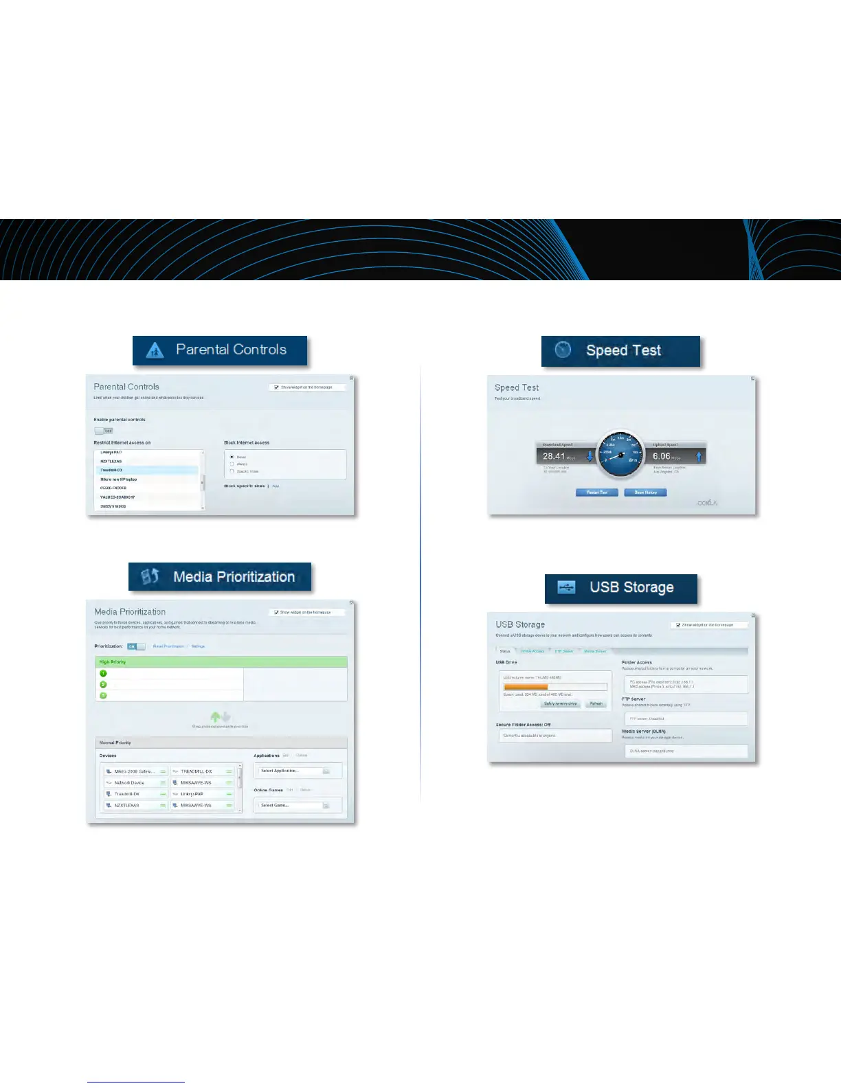 serta akses FTP. (Hanya tersedia pada router dengan port USB.)