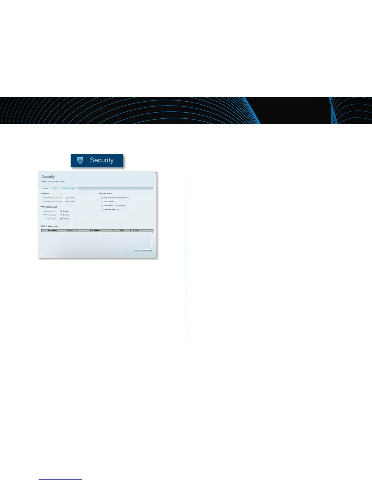 Security (Drošība), kur var konfigurēt maršrutētāja bezvadu drošību.